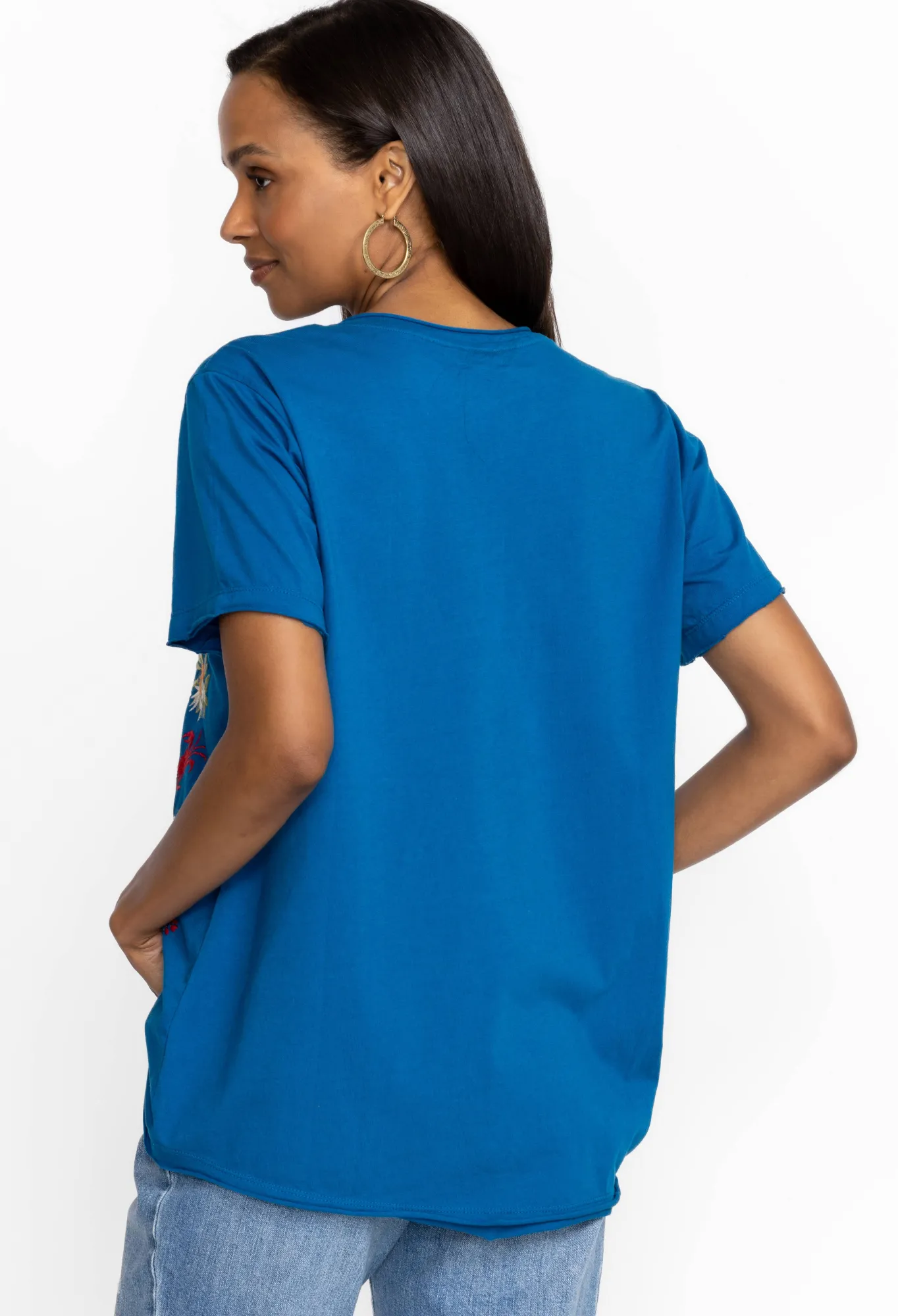 Honoring Warm Tropical Breezes And White Sand Beaches, The Florida Cap Sleeve Tee Is A Stunning Reminder Of The Wonders Of The Sunshine State. A Perfect Blend Of Whimsical Placement Embroidery And 100% Breathable Cotton, This Tee Is A Travel Wardrobe Must-Have. Pair With Linen Palazzo Pants And Wedge Sandals For The Warmest Days.