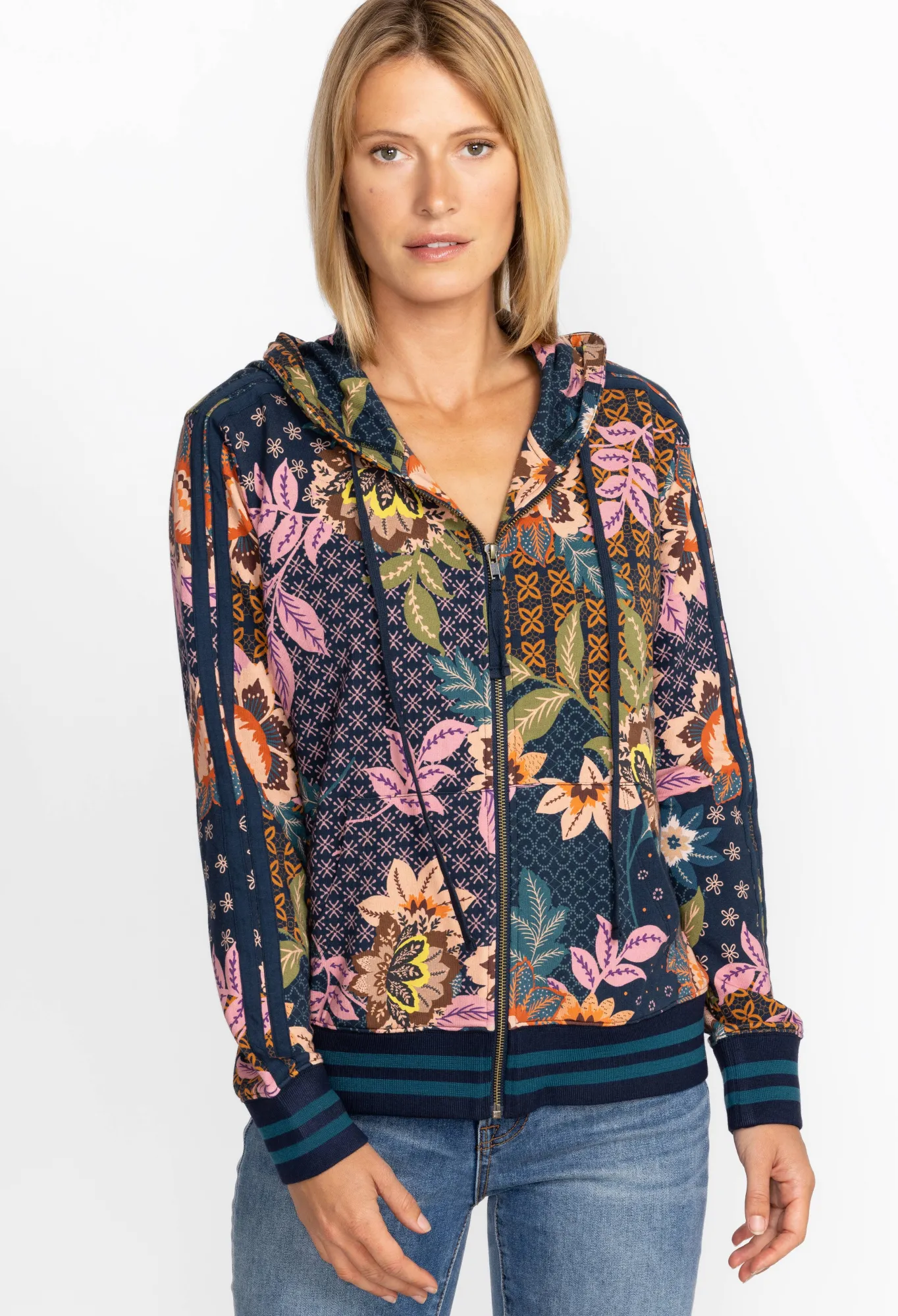 Embellished With Bold Floral Bouquets On A Rich Background, The Delfino Print Zip Up Hoodie Is Equal Parts Comfort And S…