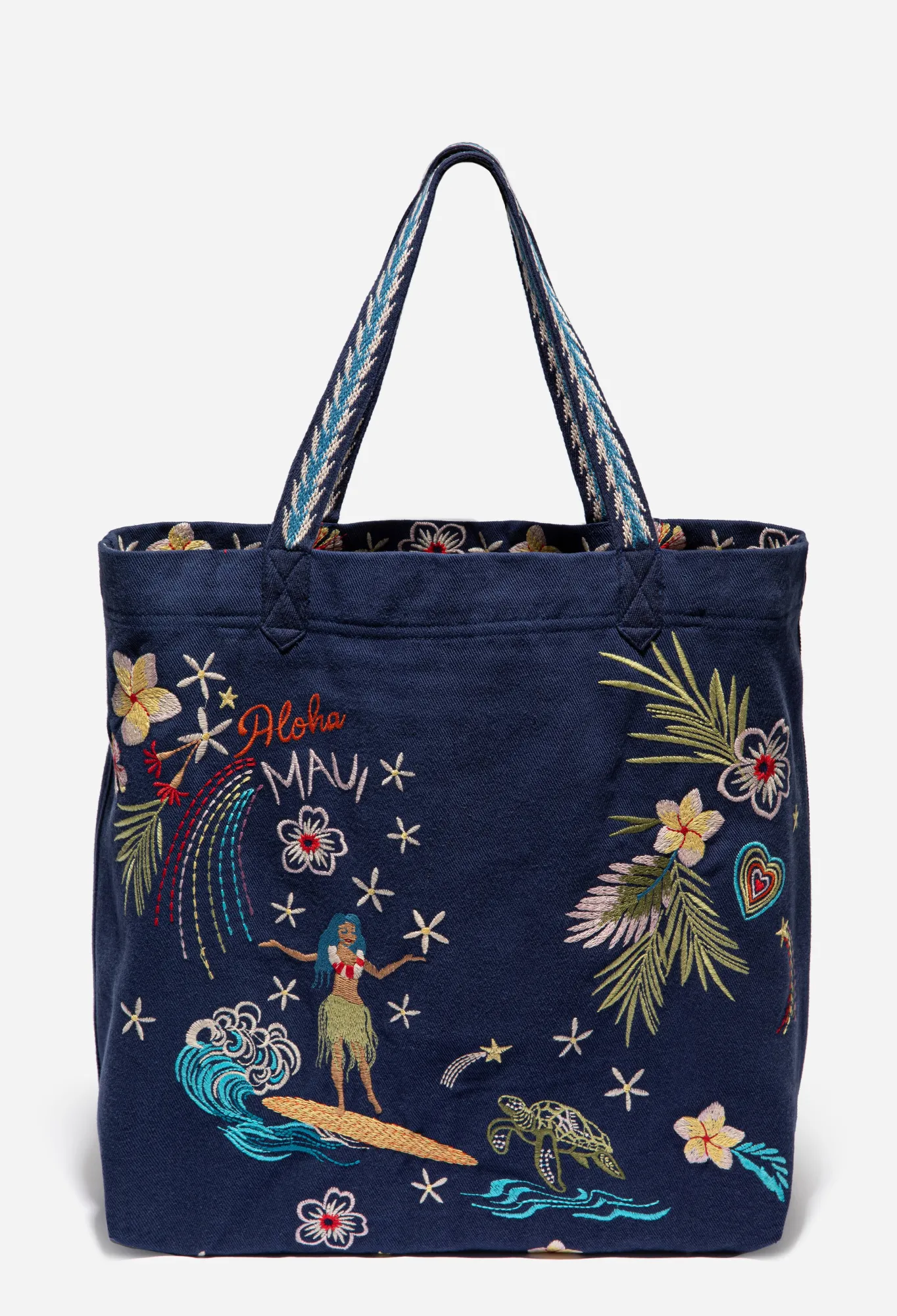 Embodying Beautiful Tropical Color Against A Rich Field Of Blue, The Hawaii Everyday Tote Is The Perfect Way To Celebrate The Islands. Crafted From 100% Cotton And Adorned With Floral Displays And Island Scenes This Tote Features Interior Zip Pocket For Smaller Items. Add This Accessory To Your Favorite Linen Ensemble For A Beach-Ready Vibe.