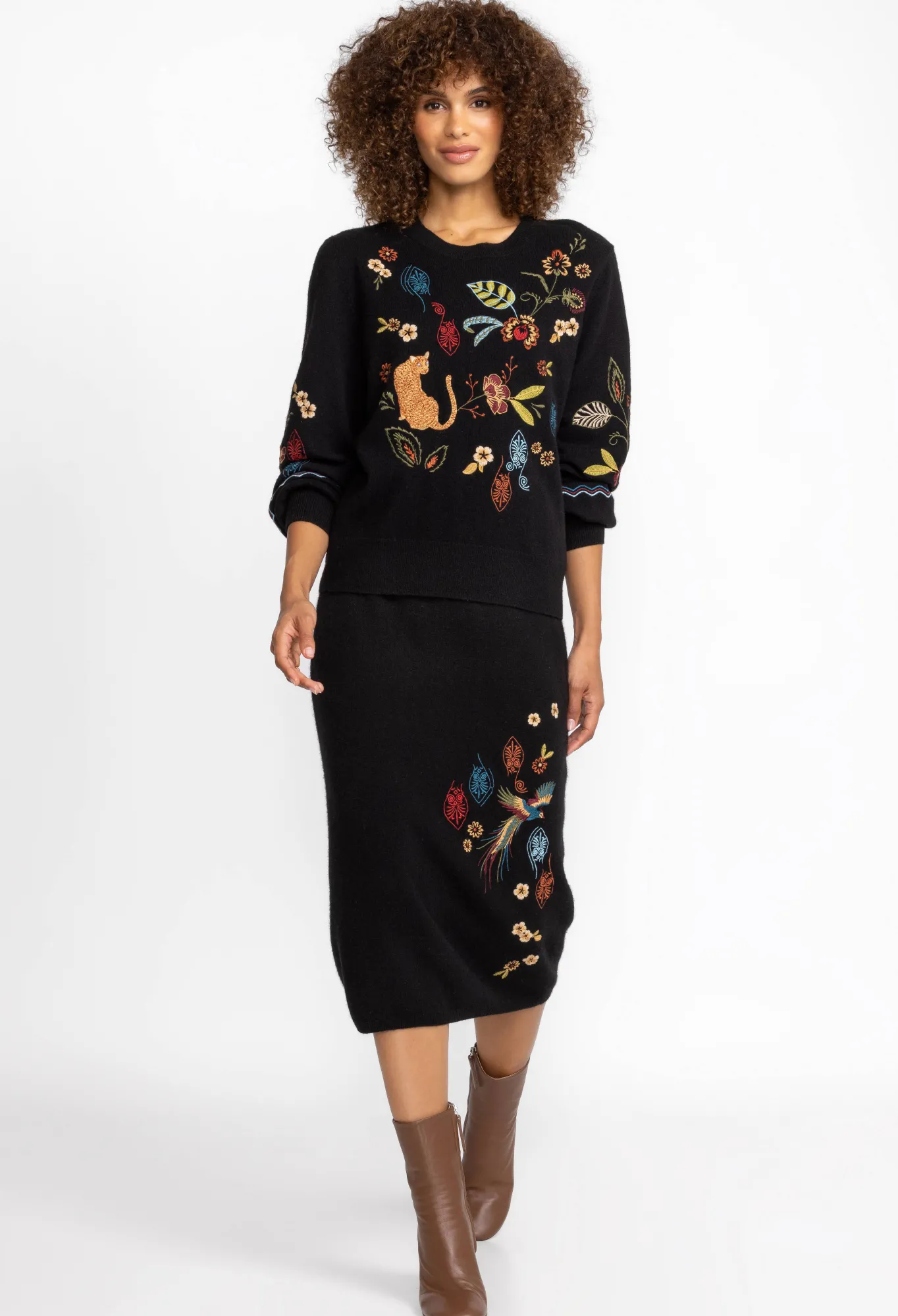 Meticulously Fashioned From A Luxurious Blend Of Wool And Cashmere, The Isabella Sweater Top Introduces A Striking Burst Of Vibrant Color To The Timeless Black Pullover. This Cozy Round-Neck Sweater Boasts Playful Placement Embroidery That Adds An Enchanting Touch. Elevate Your Style By Pairing It With The Isabella Sweater Skirt For A Seamlessly Coordinated Ensemble.