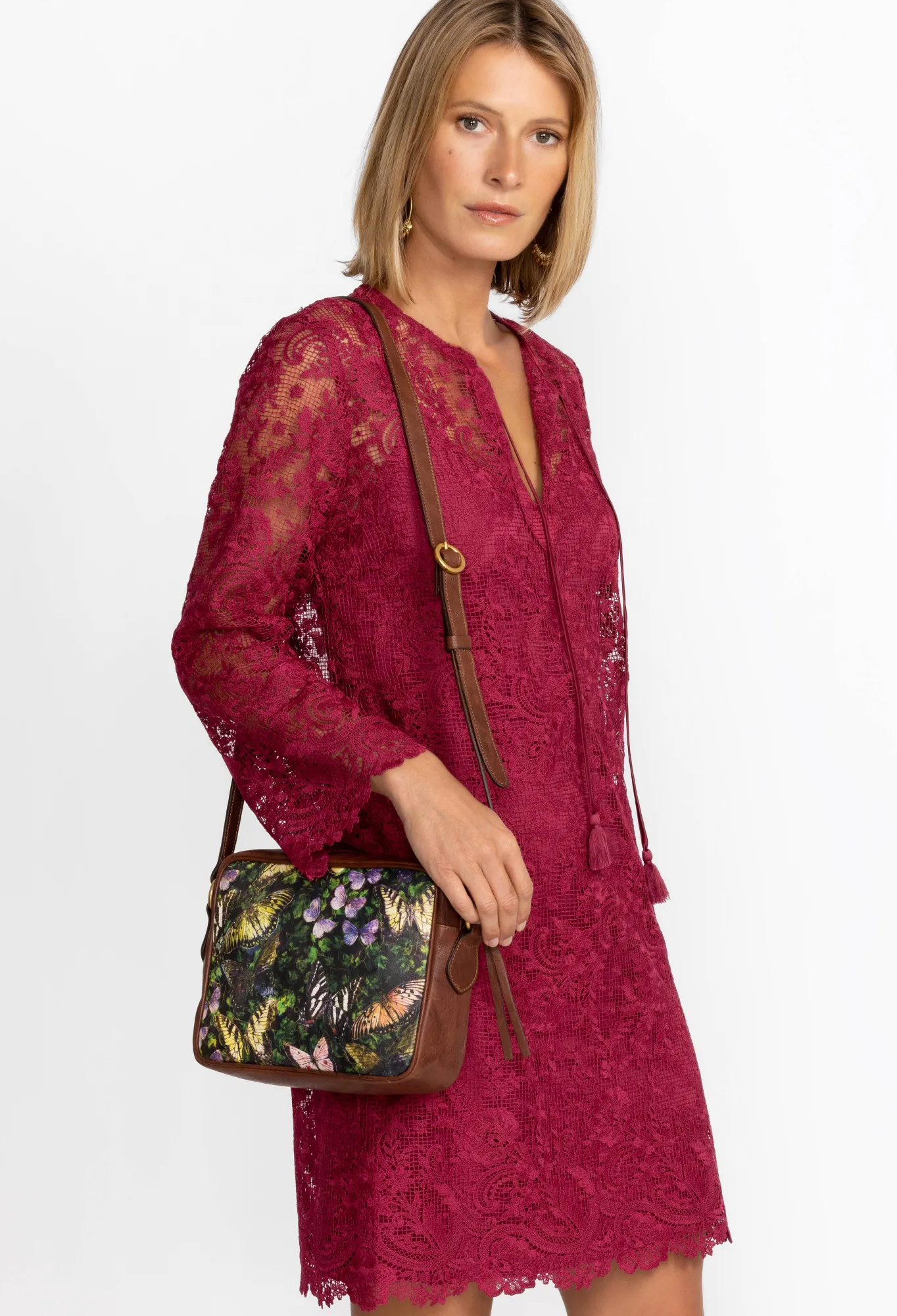 Adorned With A Bevy Of Butterflies Displayed On A Lush Backdrop, The Italian-Made Midnight Mariposa Crossbody Makes A Ch…