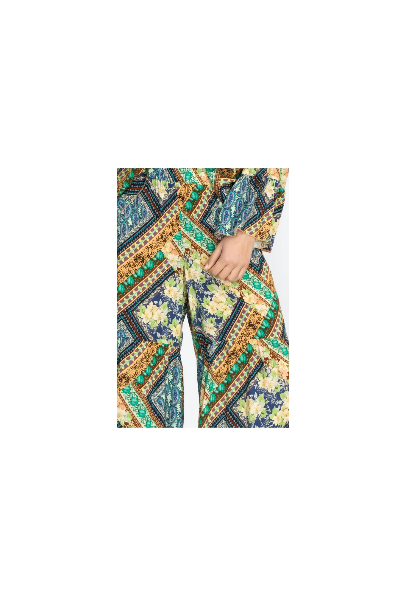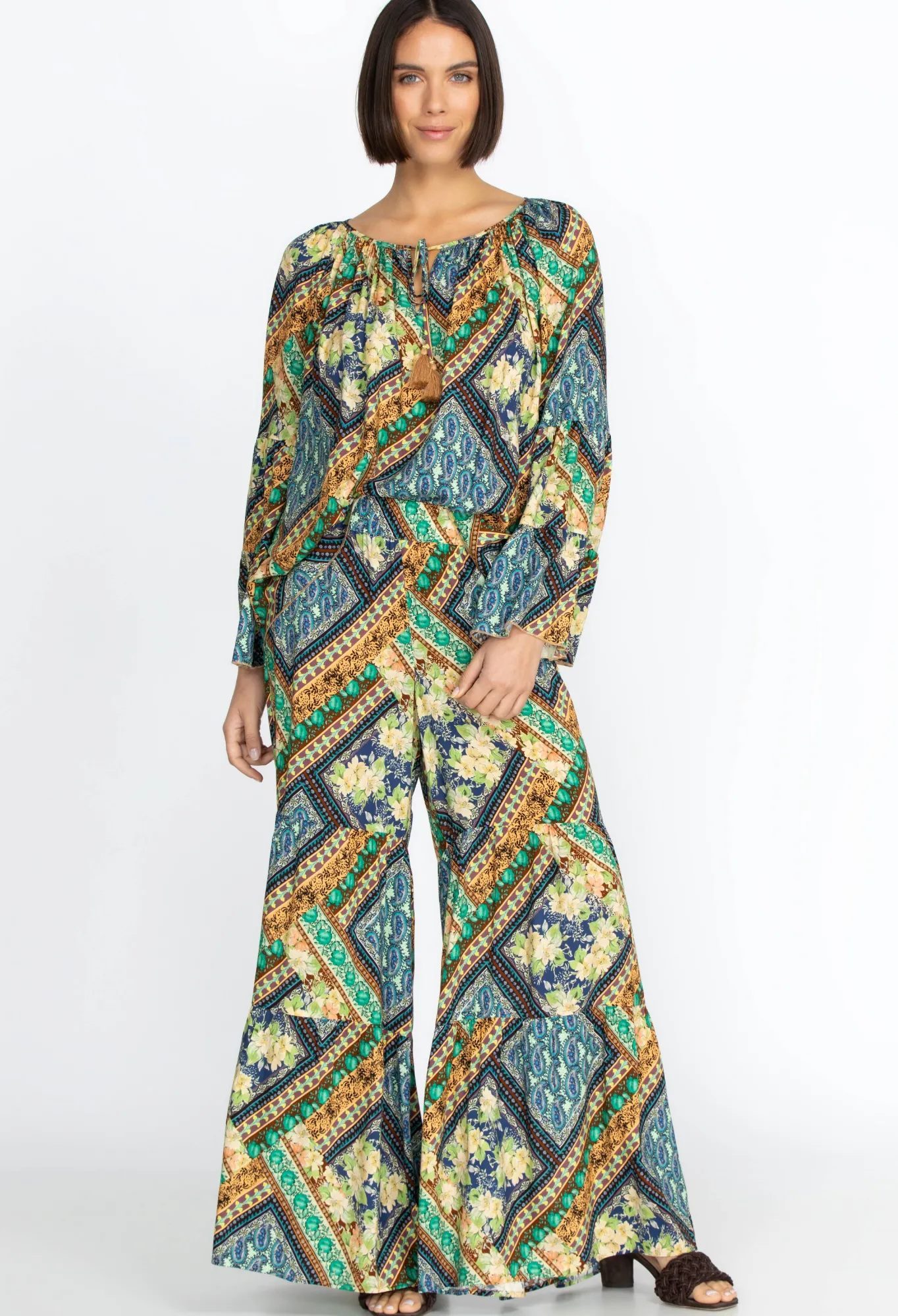 The Detailed Square And Floral Pattern Complements The Earthy-Toned Color Palette On The Rivera Tiered Pants. Infused Wi…