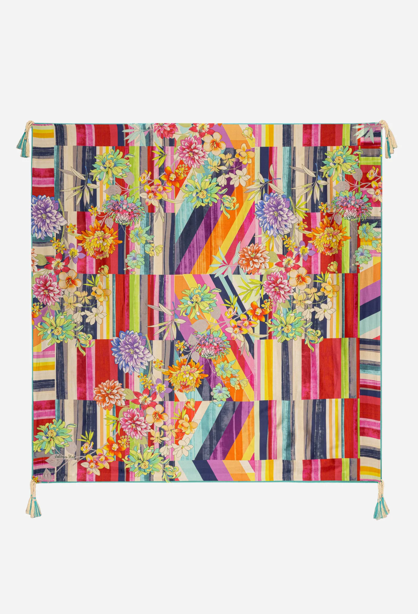 Bold Geometric Patterns Complemented By Soft Floral Flourishes Make The Summer Stripe Scarf A Timeless, Romantic Piece T…