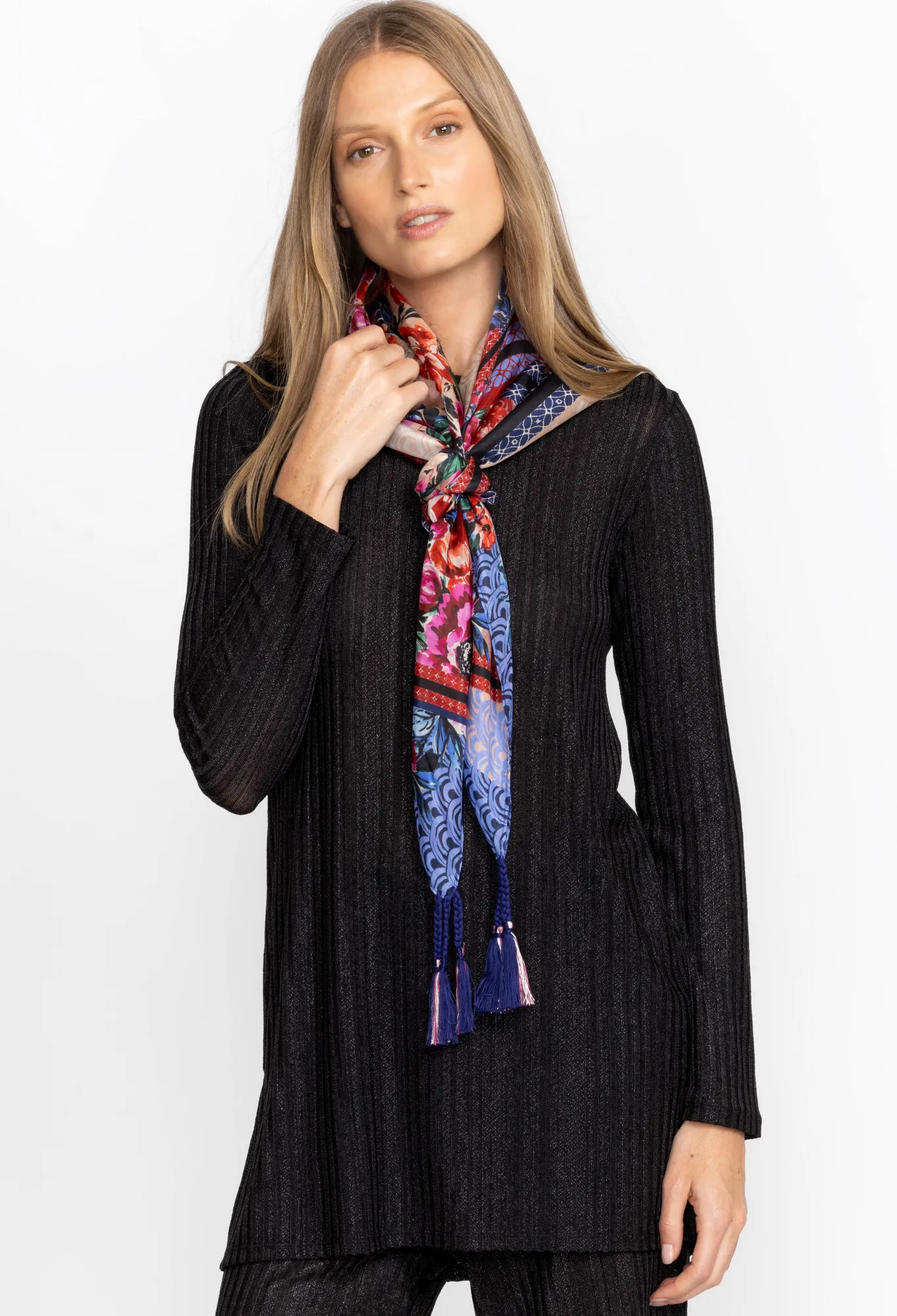 Offering A New Perspective On Accessories, The Window Scarf Offers Layered Images In Eye-Catching Colors For A Unique Visual Display. Crafted From 100% Silk, This Luxurious Scarf Adorned With Decorative Tassels Is The Perfect Accessory To Add Bit Touch Of Polish To Your Workday Look. Pair With A Button-Down Blouse And A Classic Pencil Skirt For A Complete Work Ensemble.