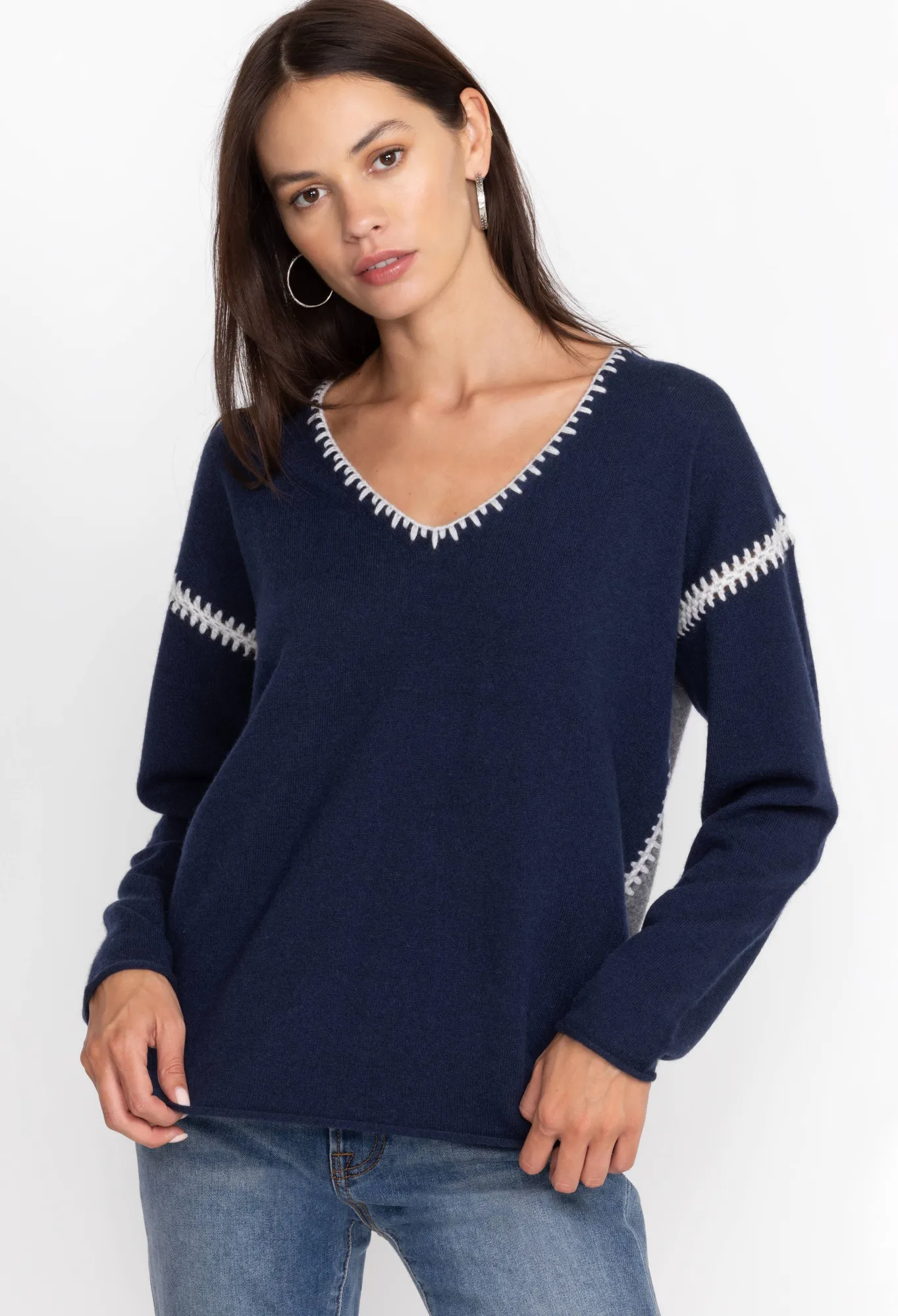 Cheap The Whipstitch V Neck Pullover – Color Block Women Tops