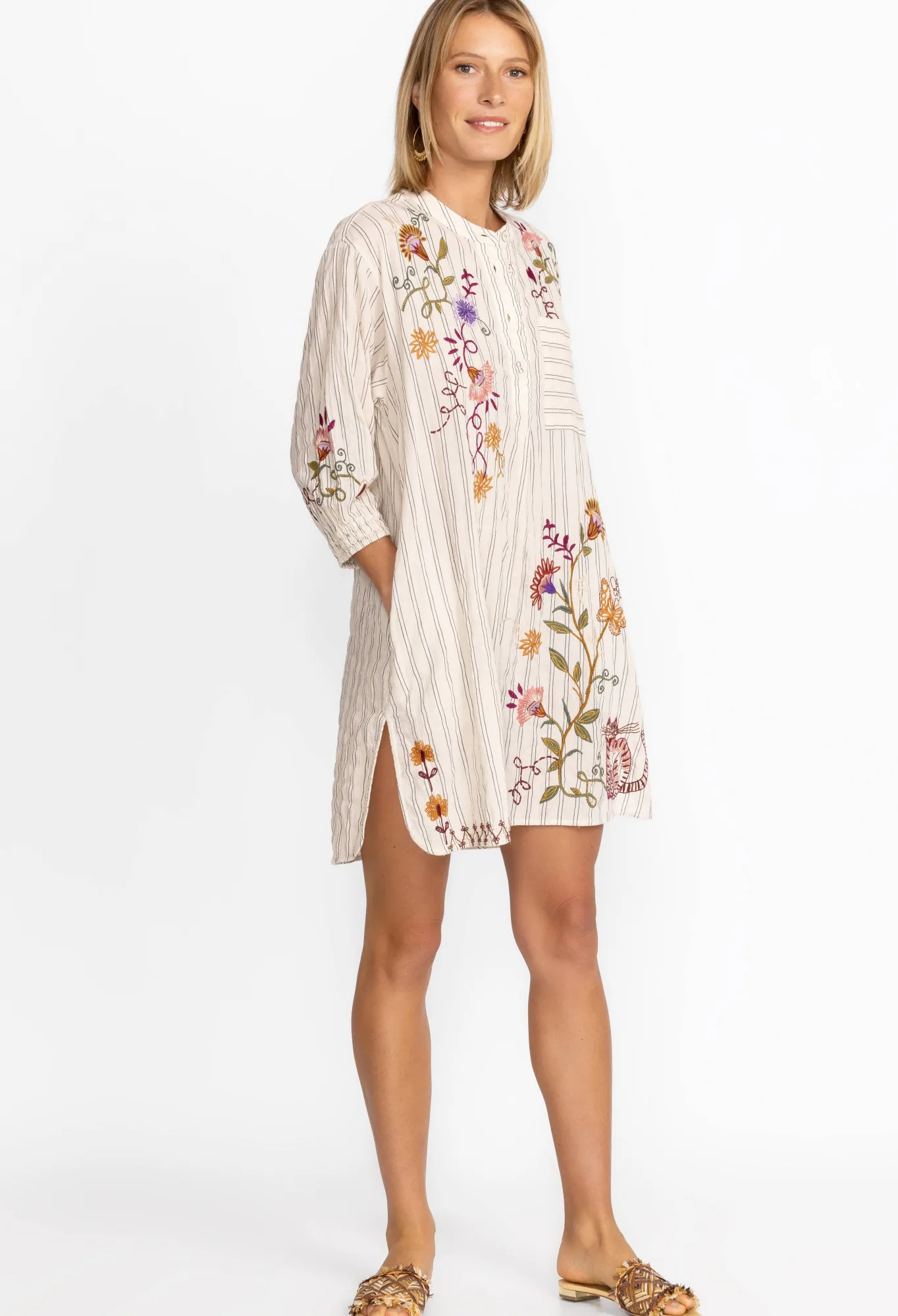 Channel Your Inner Artist In The Toni Smocked Cuff Tunic As You Soak Up The Season And All Its Beauty. Crafted From A Breathable Cotton Blend And Thoughtfully Adorned With Traces Of Floral Embroidery, This Relaxed Top Allows For Ease Of Movement And Elevated Style. Pair With Skinny Jeans And Ballet Flats For A Covetable Casual Look.
