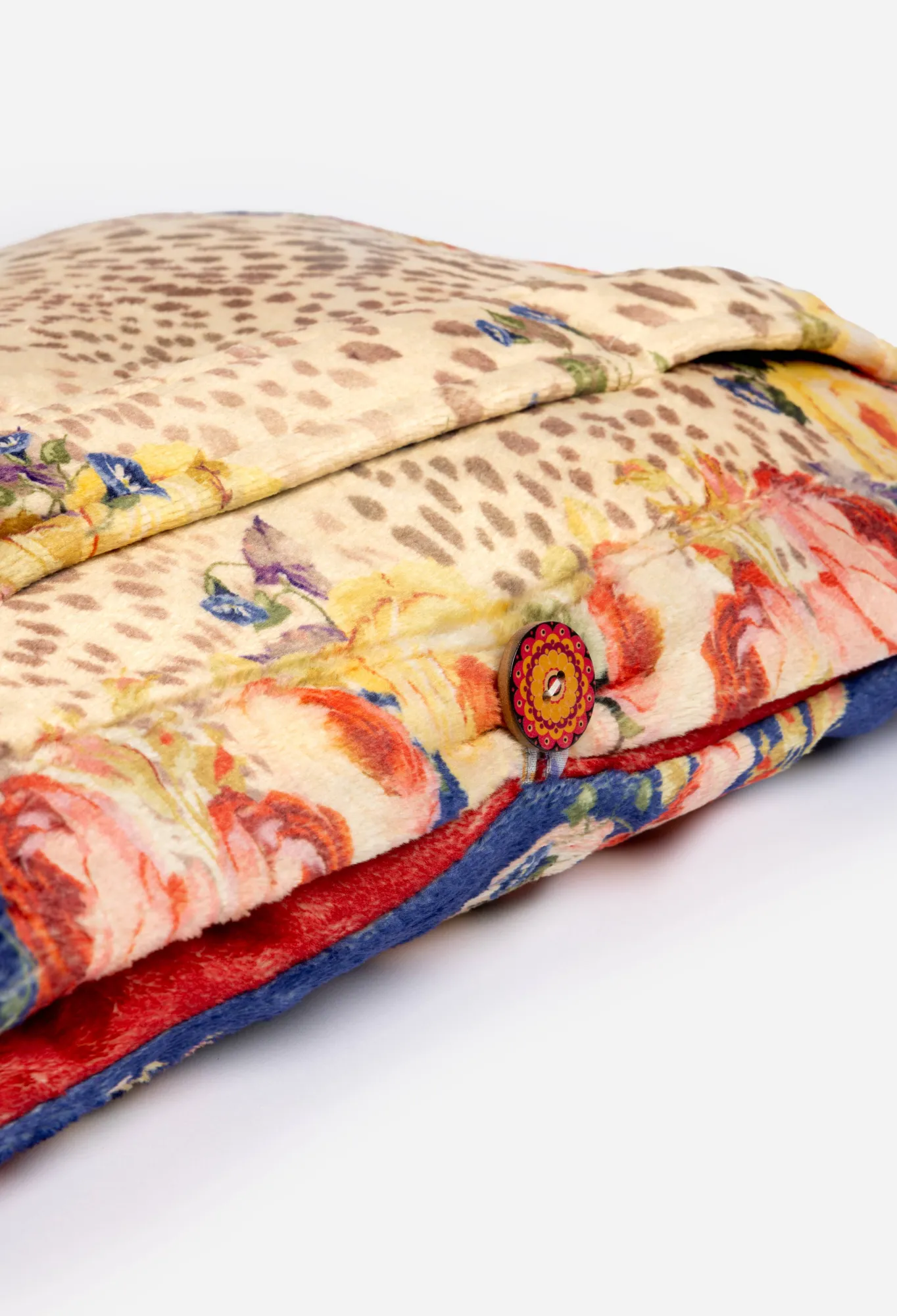 Comfort And Practicality Work Harmoniously On The Rose Winery Travel Blanket. Perfect For Both Travel And Quiet Moments At Home, This Blanket Is Crafted From A Soft Material And Boasts An Eclectic Floral Print With A Bold Border, A Repeated Pattern On The Reverse Side, And A Separate Bag For Seamless Transportation.