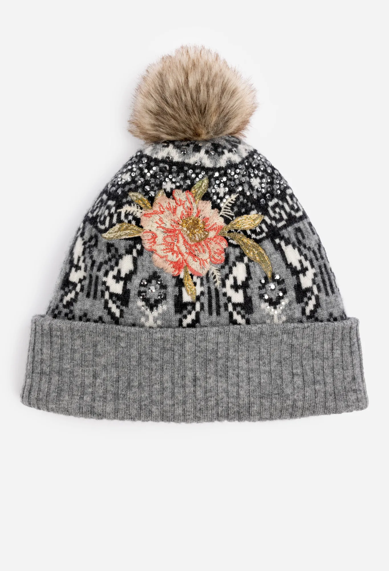 A Classic Cold-Weather Warmer, The Sammy Fairisle Beanie Seamlessly Blends Style With Practicality. Crafted From A Cashmere Wool Blend, This Beanie Is Enhanced By A Classic Fairisle Knit And Features A Pompom Embellishment And A Placement Embroidery Consisting Of Vintage Blooms. Wear This Beanie With Everything From Denim To Cozy Knitwear.