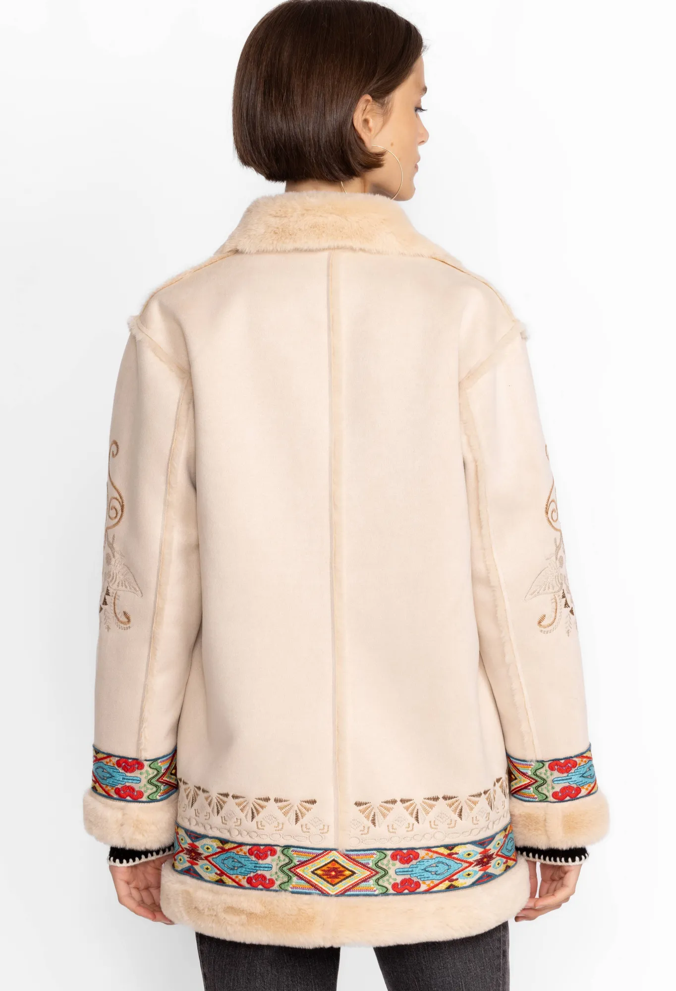 Add A Touch Of Unmatched Style To Apres Ski Activities With The Hepburn Ski Faux Fur Coat. Perfect For Both The Slopes And Evening Activities, This Coat Is Made From Insulating Faux Fur And Features A Fabric Covered Snap Closure, Pockets, A Faux Fur Collar And Trim, And A Detailed Floral Placement Embroidery. Pair With Knitted Pants And A Sweater For A Cozy Cold-Weather Finish.