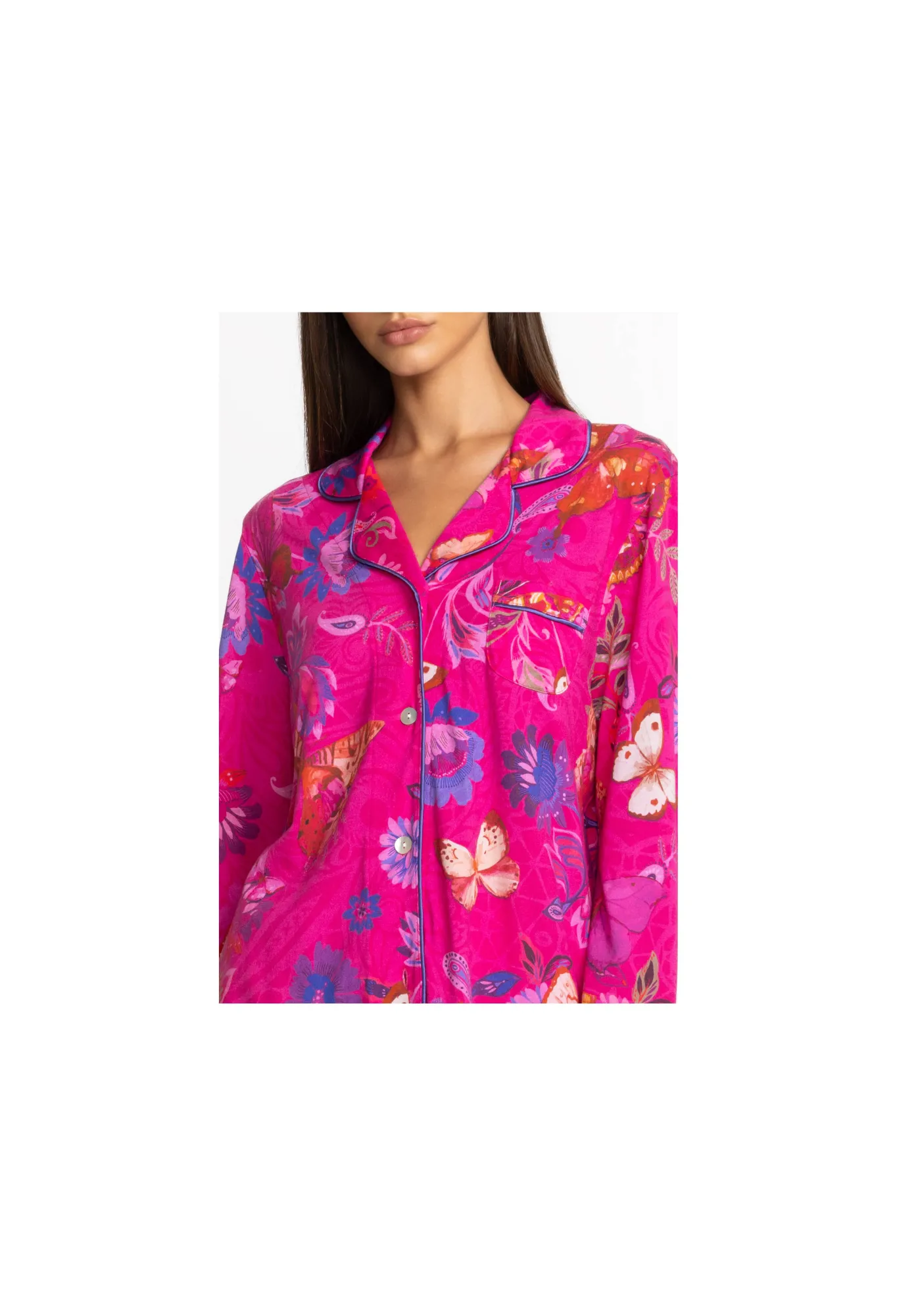 Combining Style And Unimaginable Comfort, The Carly Pj Set Is Designed To Accompany You Into Deep, Revitalizing Sleep. Crafted From A Luxurious Cotton Blend, This Pj Set Features A Button Front Top And Easy Wide Leg Pants With An Elastic Waist. Layer With Acozy Robe And Your Favorite Slippers For A Polished Loungewear Look.