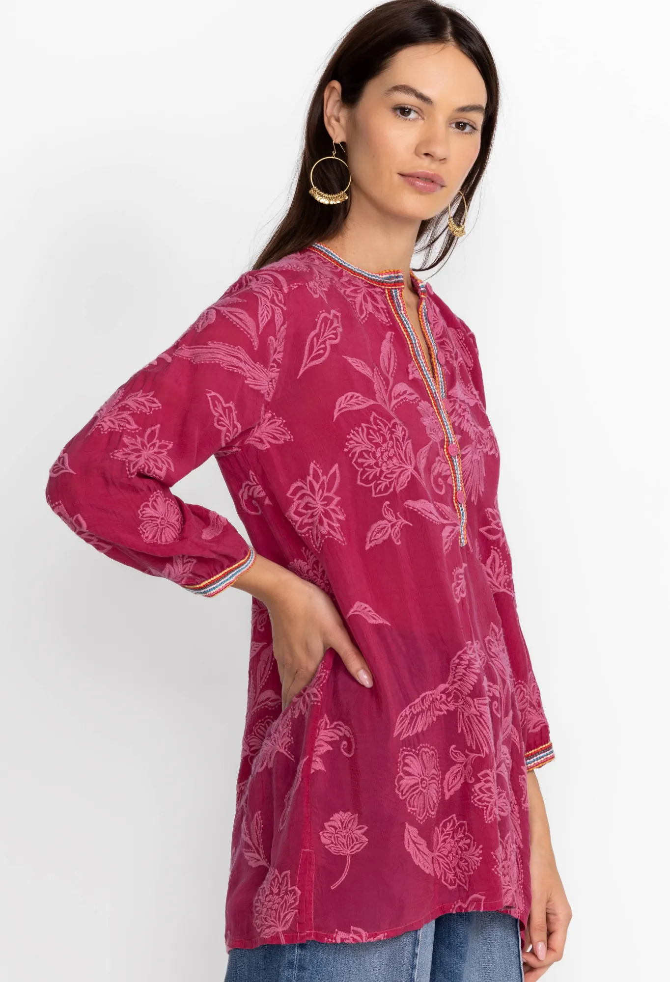 Adopting A Red Color Scheme, The Noah Cabana Tunic Showcases A Romantic Bird And Floral Embroidery That’s Offset By Colo…