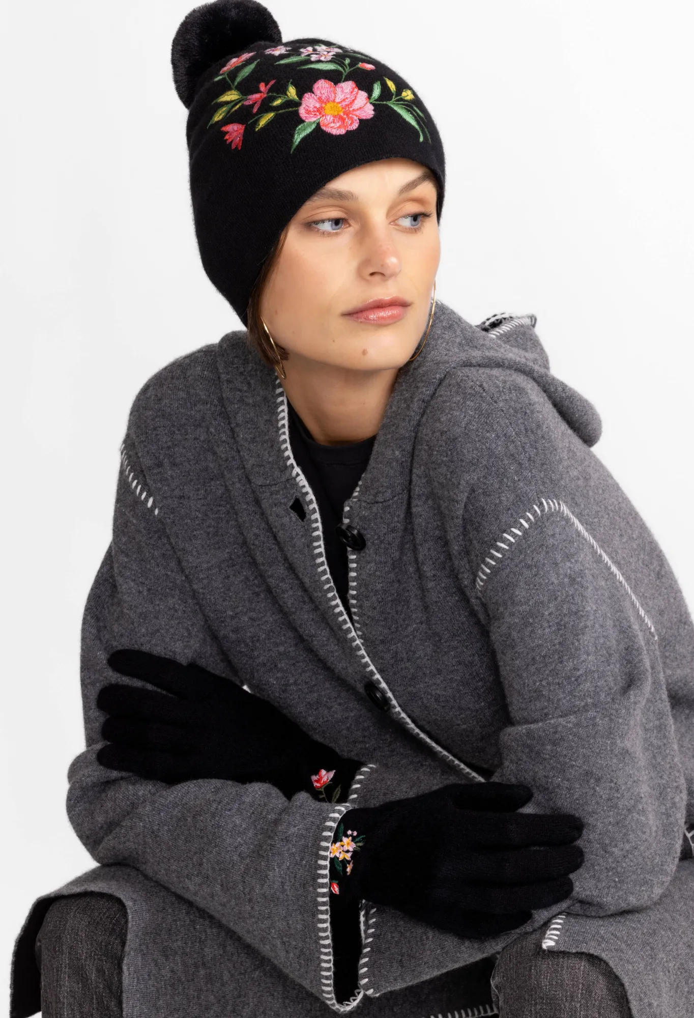 Spun From A Soft Wool Cashmere Blend, The Vista Beanie Calls To Mind Images Of A Beautiful Floral Garden. A Stylish Pick For Colder Days, This Beanie Is Characterized By A Pompom Embellishment And Vibrant Embroidered Flowers. Wear This Beanie With A Simple Cozy Knit, A Puffer Jacket, And Jeans On Your Next Frosty Weekend Walk.