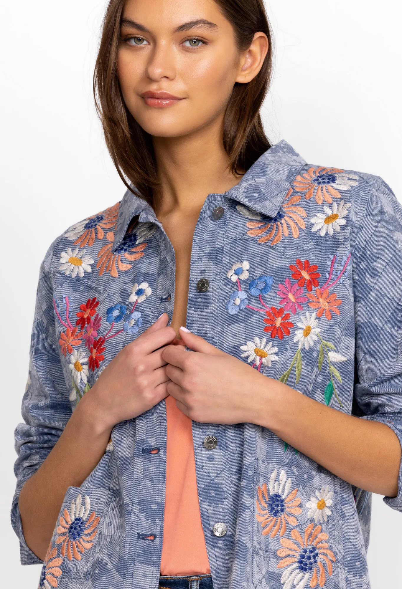 The Marissa Western Worker Jacket Is The Perfect Blend Of Comfort And Style. Embellished With Creative Placement Embroideries, This Cotton Jacket Offers An Elegant Touch To Any Look. Pair With A Dress Or Layer Over A Classic Tee: This Jacket Is As Versatile As You Want It To Be.