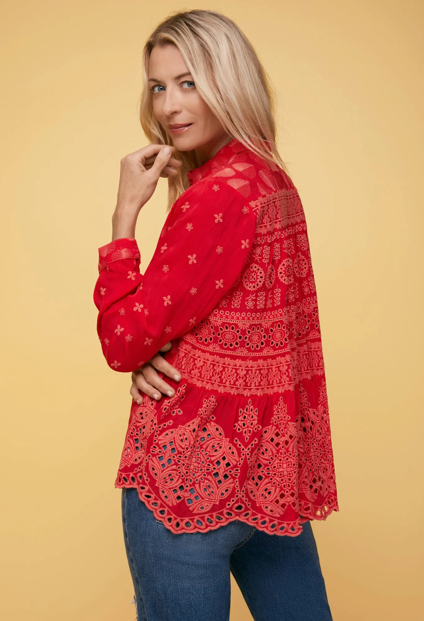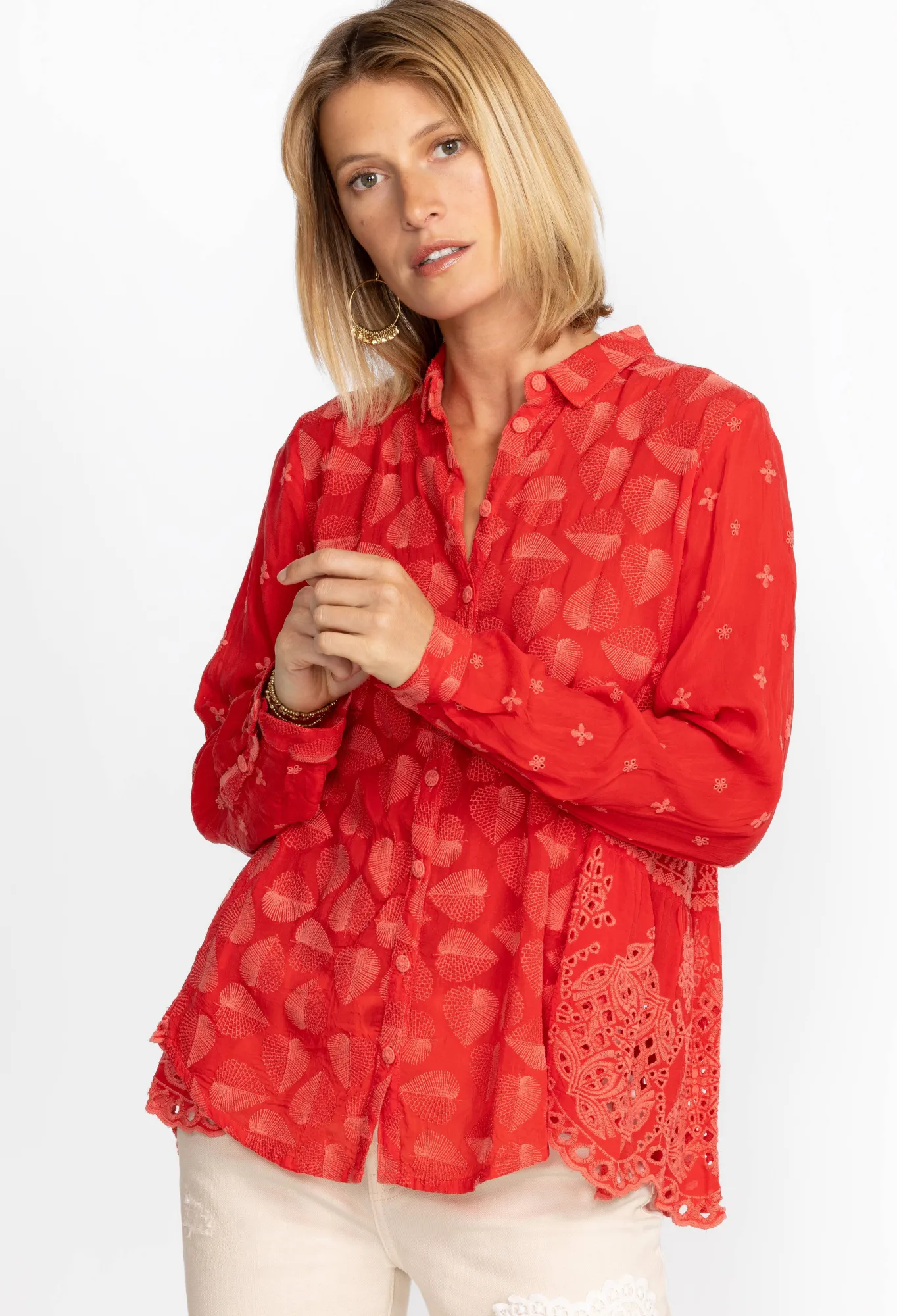 Equal Parts Sophisticated And Stylish, The Pine Desi Blouse Is A Failsafe Addition To Your Year-Round Repertoire. Crafted From Smooth Rayon, This Elegant Blouse Boasts A Classic Collar, Long Sleeves, A Front Button Closure, And A Subtle, Tonal Embroidery. Style This Blouse With Silk Separates And Bold Accessories Or Dress Down With Denim.