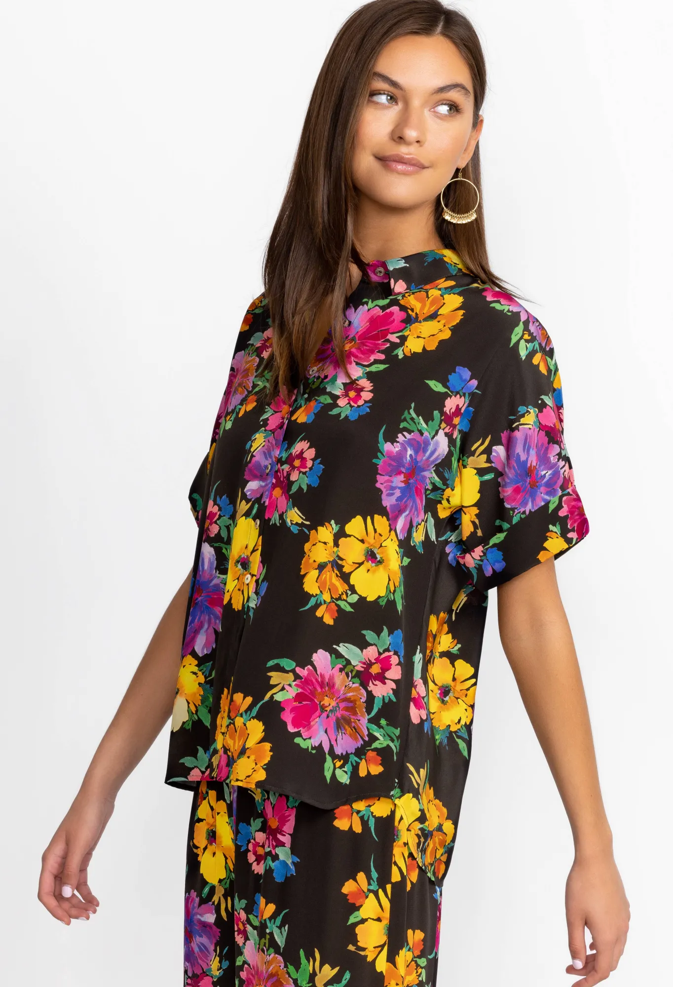 Featuring Rich Color To Celebrate The Season, The Poppy Silk Shirt Brings To Mind Rolling Hills Saturated In Vibrant Floral Tones. Crafted From Pure Silk And Fastened By Intricately Placed Shell Buttons, This Blouse Is The Capstone Of Any Look. Pair With A Solid Skirt Or Denim To Allow This Blouse To Take Center-Stage.