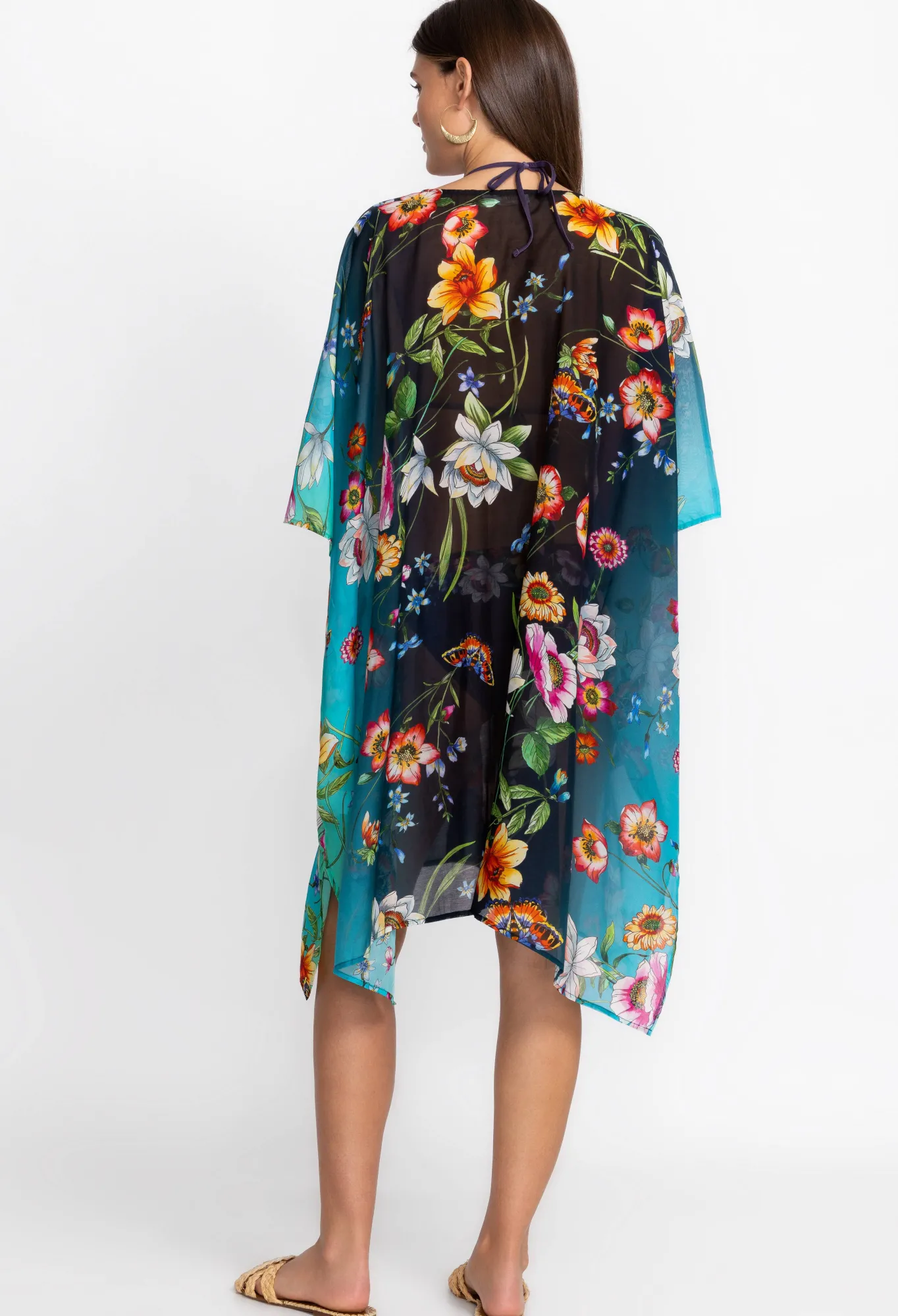 Equal Parts Captivating And Classic, The Ombre Garden Short Kimono Adopts A Free-Flowing Cut That’s Perfect For Warmer Climes. This Kimono Is Designed From A Luxe Cotton Silk Blend And Boasts A Flattering V-Neck, Long Sleeves, And Sprouting Blooms Throughout In A Beautiful Selection Of Colors. Style Over Swimwear And Sign Off The Look With Sandals Or Slides.