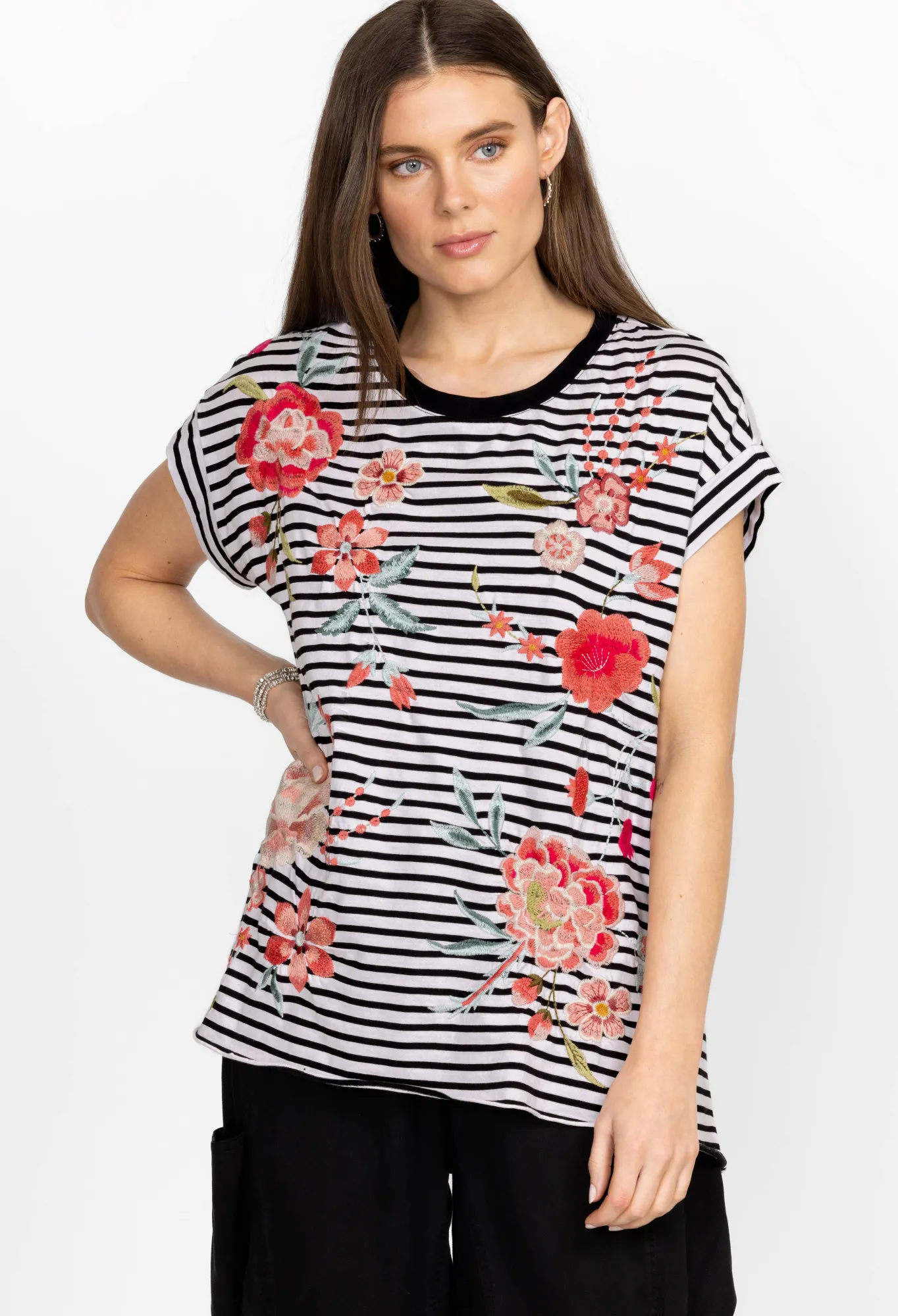 A Versatile Must-Have, The Joya Relaxed Drape Tee Makes Daytime Dressing Easy Thanks To Its Simple Cut And Timeless Design Details. Adopting A Relaxed Fit, This Tee Is Made From Durable Cotton With A Round Neck, Short Sleeves, A Flower-Dotted Placement Embroidery, Draped Detailing, And A Split Hem For Unrestricted Movement. Wear With White Pants For An Ethereal Look Or Keep It Simple With Jeans.