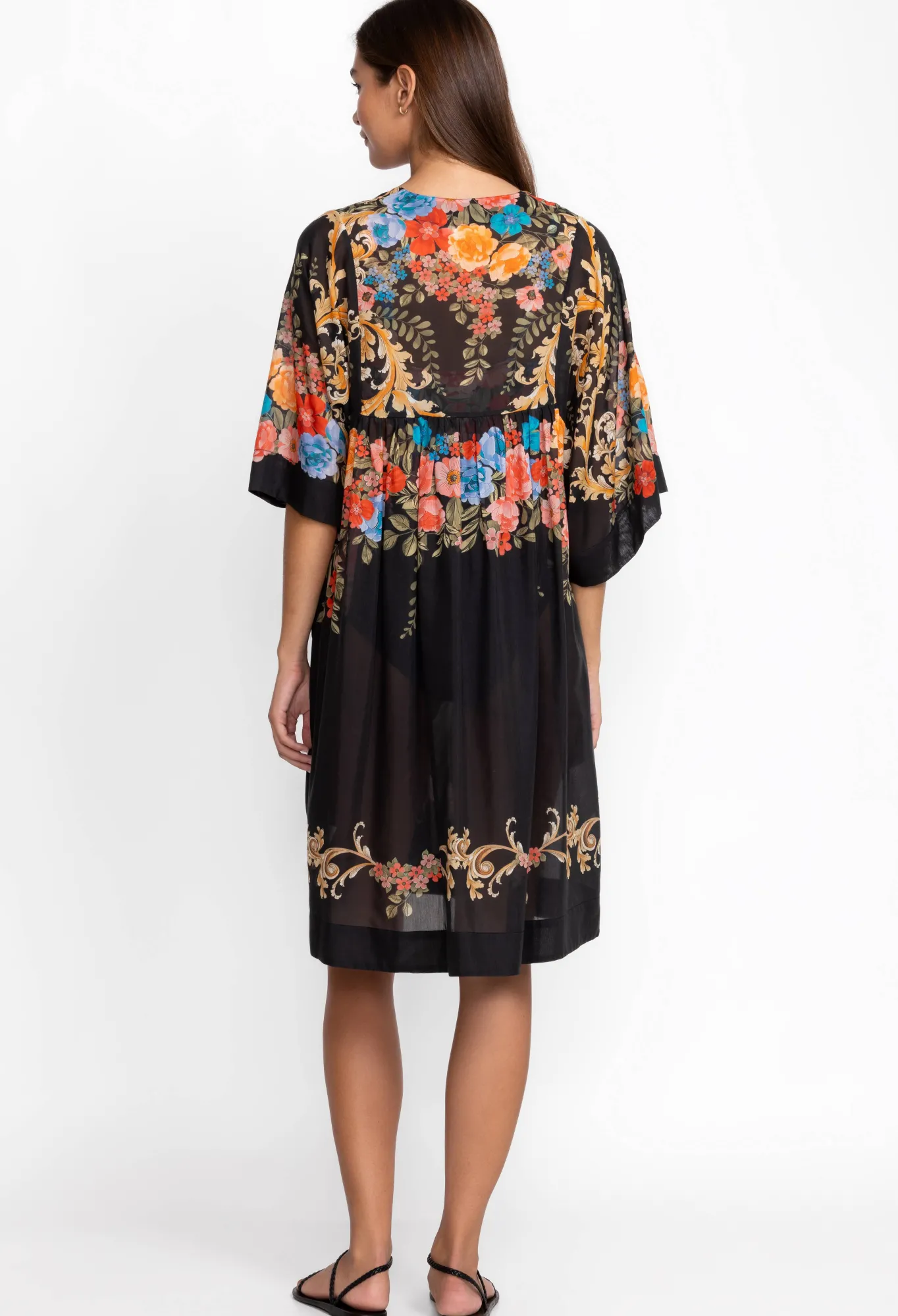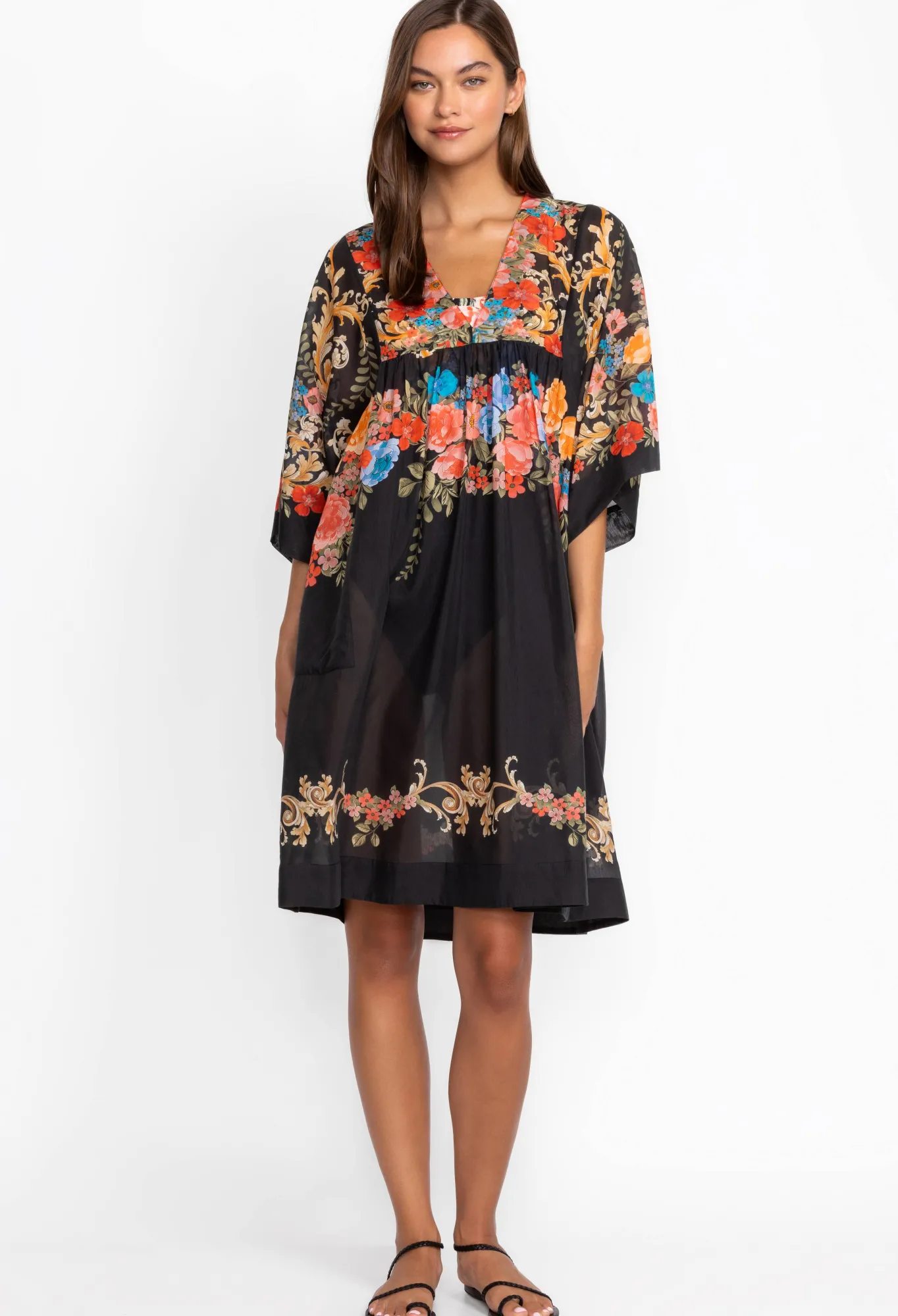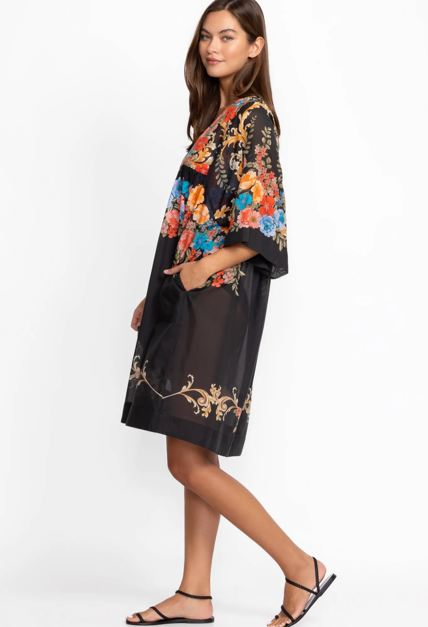 As Effortless To Style As It Is To Wear, The Black Royal Easy Cover-Up Dress Is The Epitome Of Nonchalant Elegance. Crafted From A Flowy Material, This Dress Is Cut In A Slight A-Line Fit And Boasts A Flattering V-Neck, Long Wide Sleeves, A Gathered Front, And An Abundance Of Floral Motifs In Striking Tones. Finished With Functional Side Pockets, This Dress Can Be Paired With Flat Sandals For A Chic Beach-To-Bar Ensemble.