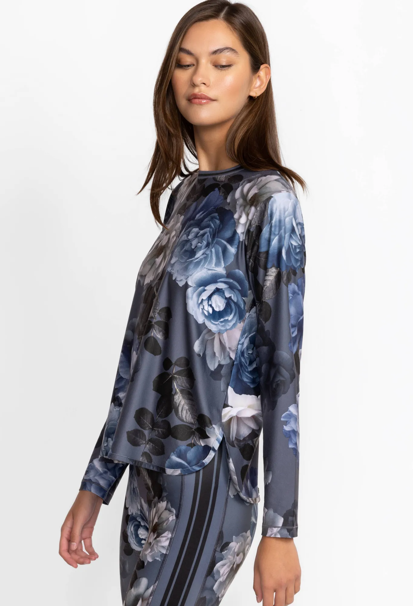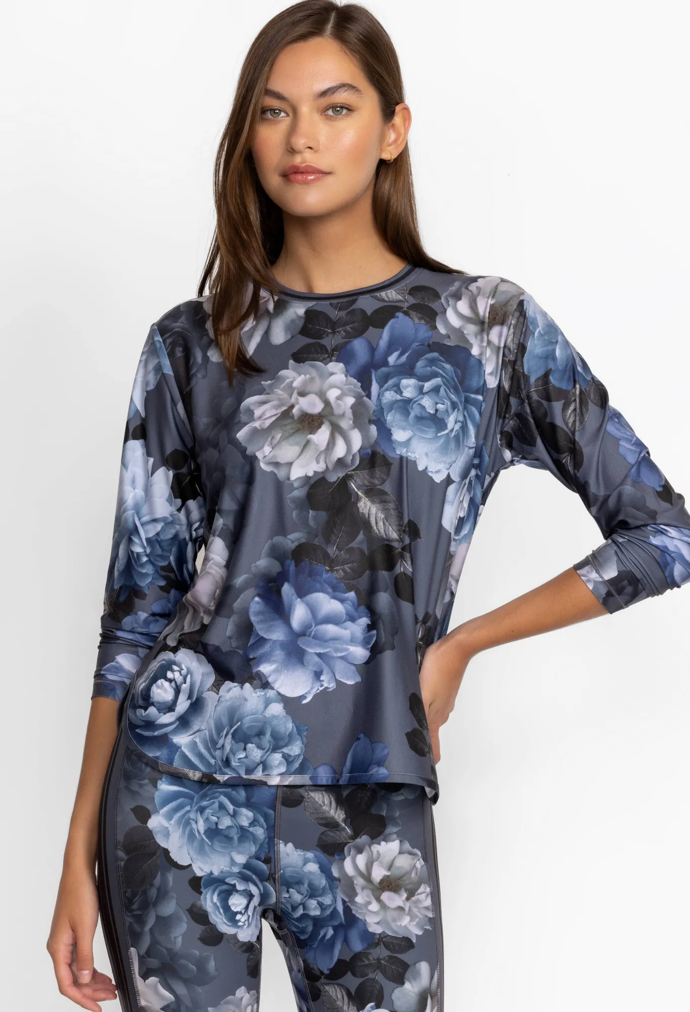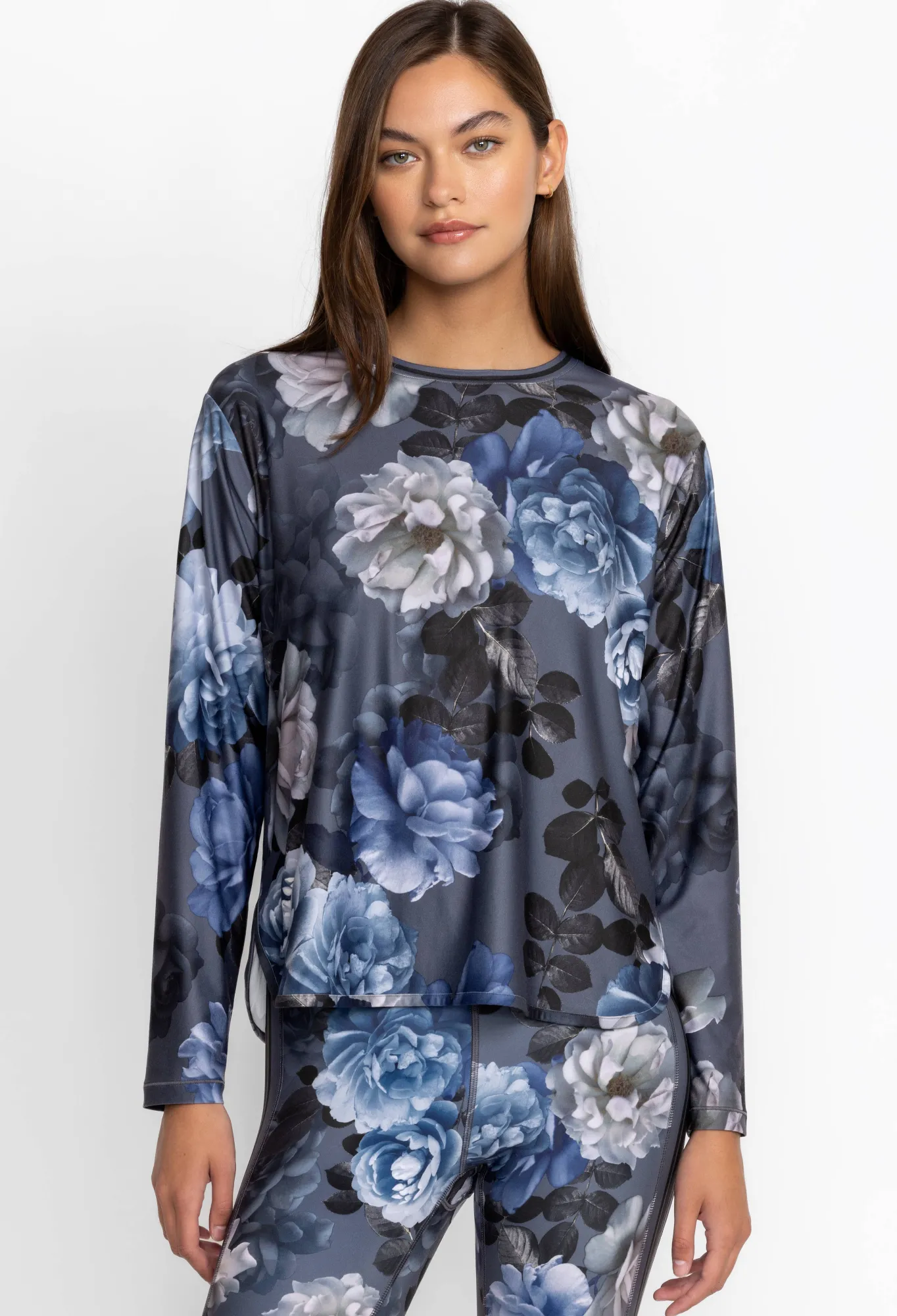 Delivering Beautiful Floral Bouquets In Delicate Dusty Hues, The Grey Peony Oversize Crop Long Sleeve Tee Is Both Visually Stunning And Functional. Crafted From A Durable Fabric That That Is Both Shrink And Fade Resistant, This Lovely Tee Is The Right Match For The Transition In Seasons. Pair With Leggings For A Morning Workout, Or Relaxed Denim For A Casual Afternoon With Friends.