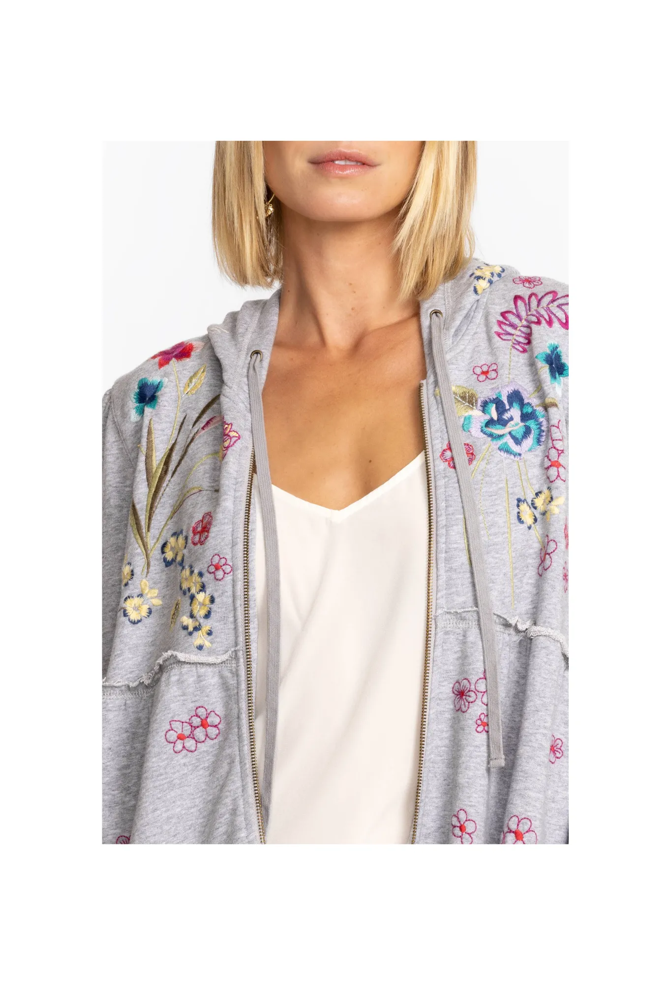Casual Sportswear With An Air Of Sophistication, The Jessi Tiered Hoodie Adds An Elegant Touch To Your Athletic Apparel. Crafted From Cotton And Embellished With Colorful Placement Embroidery, This Tiered Hoodie Is Finished With A Cozy Drawstring Hood. Pair With Leggings And Sneakers For A Workout-Ready Look.