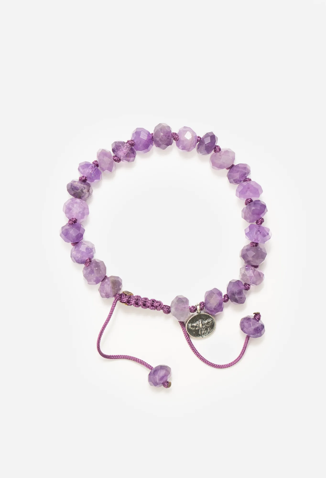 A Circle Of Hand Selected Faceted Amethyst Stones On A Hand-Knotted Adjustable Cord. The Perfect Piece To Slip On Your Wrist As The Amethyst Is Thought To Change Negative Energy Into Love, While Also Bringing About A Sense Of Calm For The Wearer. A Deeply Healing And Spiritual Stone, It Has Been Celebrated Throughout History For Its Ability Connect Us To Our Own Unique Wisdom And Knowing. Note: Each Stone Is One-Of-A-Kind So There May Be Slight Variations In Each Piece.