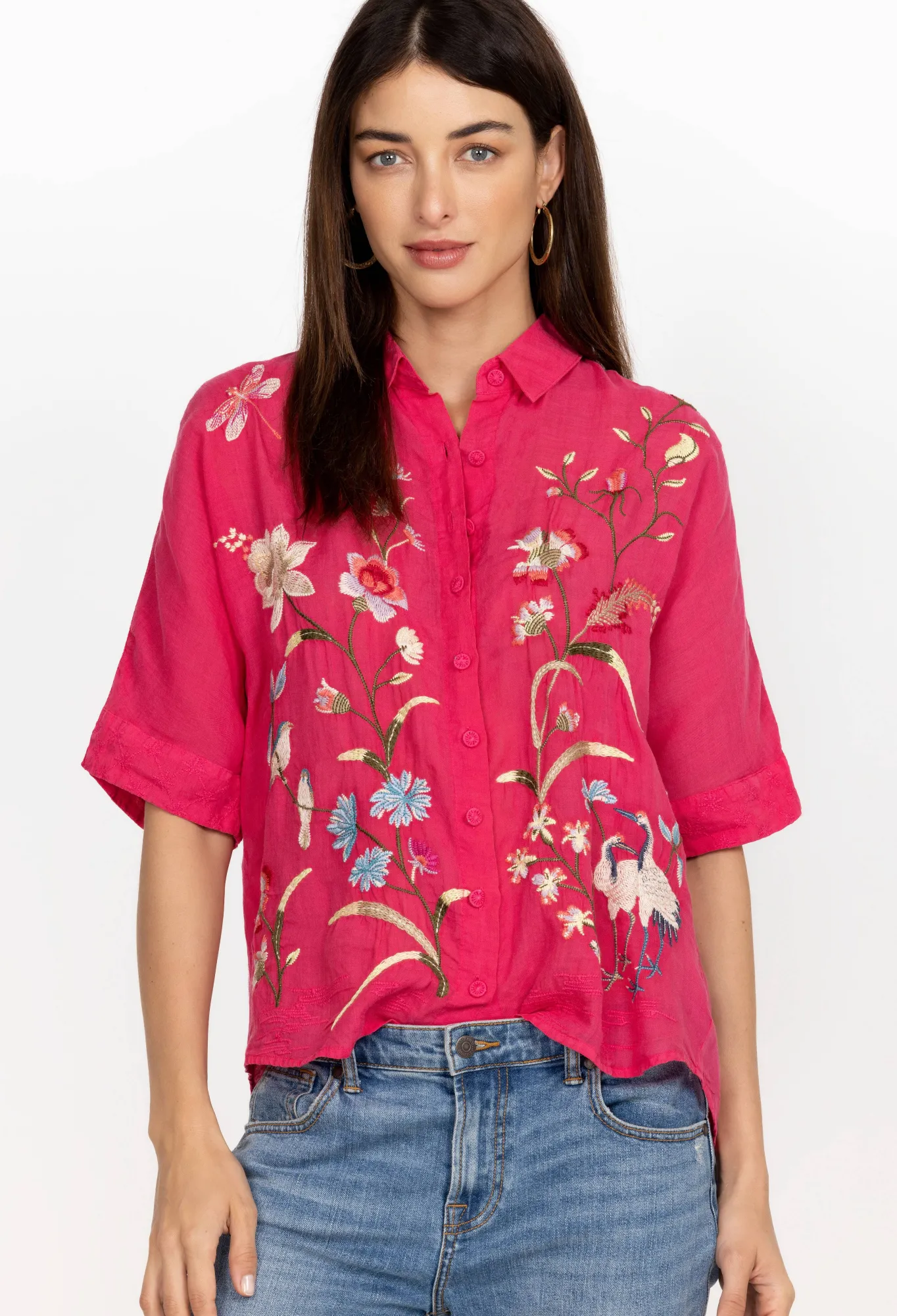 Designed From Breathable Ramie, The Geniveve Relaxed Dolman Shirt Reworks Traditional Shirting With Blossoming Florals. …