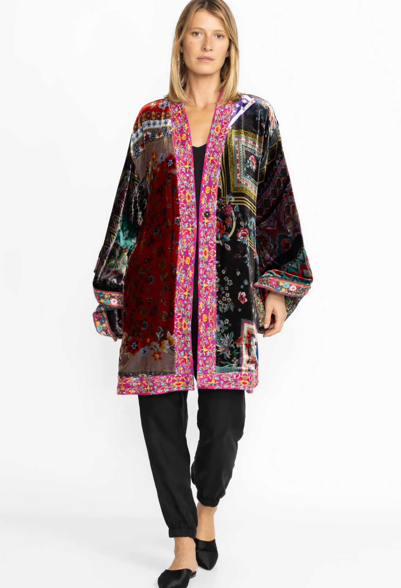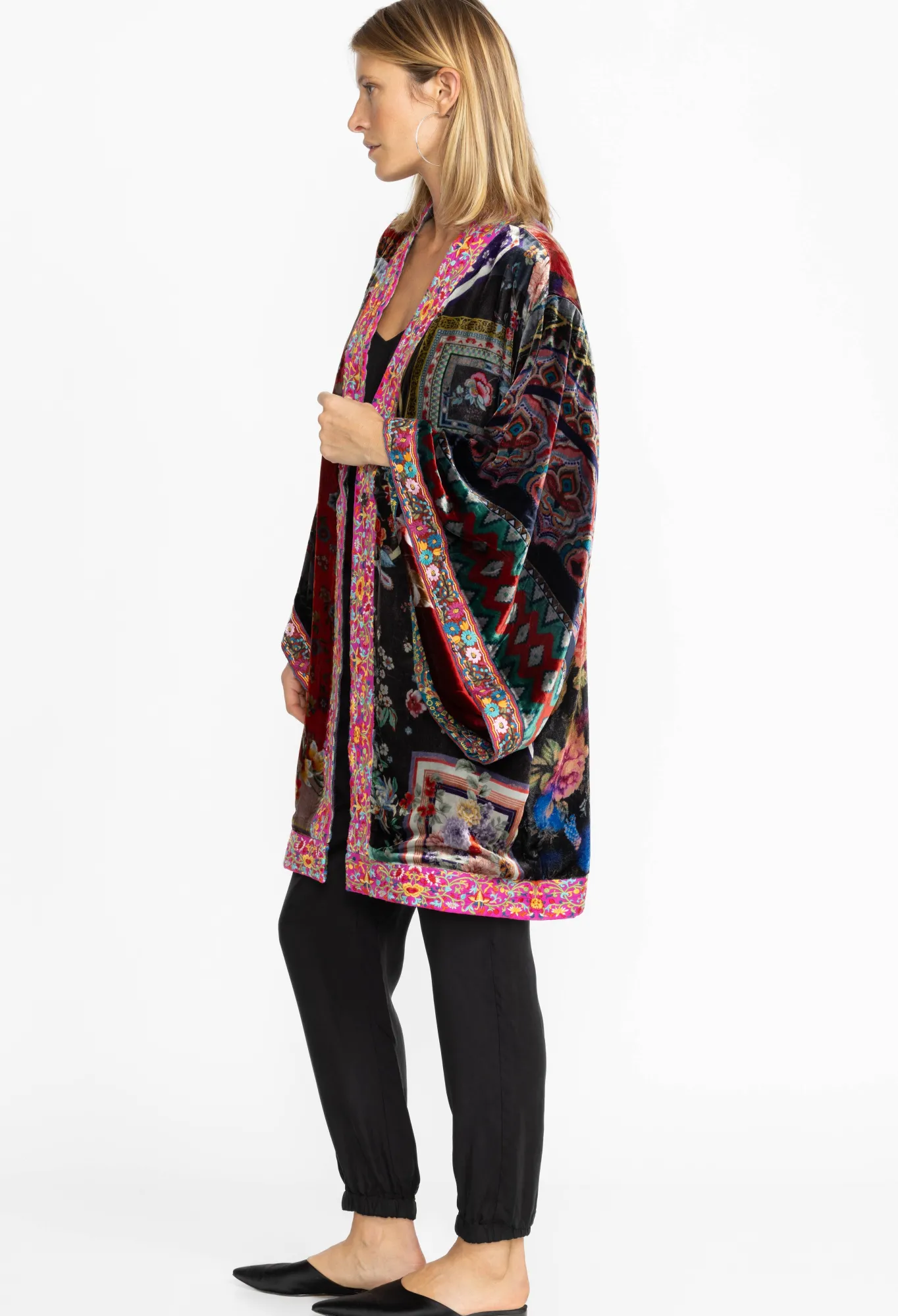Conveying A Romantic Mood, The One Of A Kind Reversible Velvet Midi Kimono Charms With Its Midnight Color Scheme And Luxe Composition. A Stylish Layer For The Evening, This Kimono Is Made From Plush Silk Blend Velvet And Boasts Long Sleeves, A Front Closure, And A Detailed Floral Pattern. Wear This Midi Kimono With A Bias-Cut Dress Or Opt For A Vest And Smart Pants For A More Sophisticated Approach.
