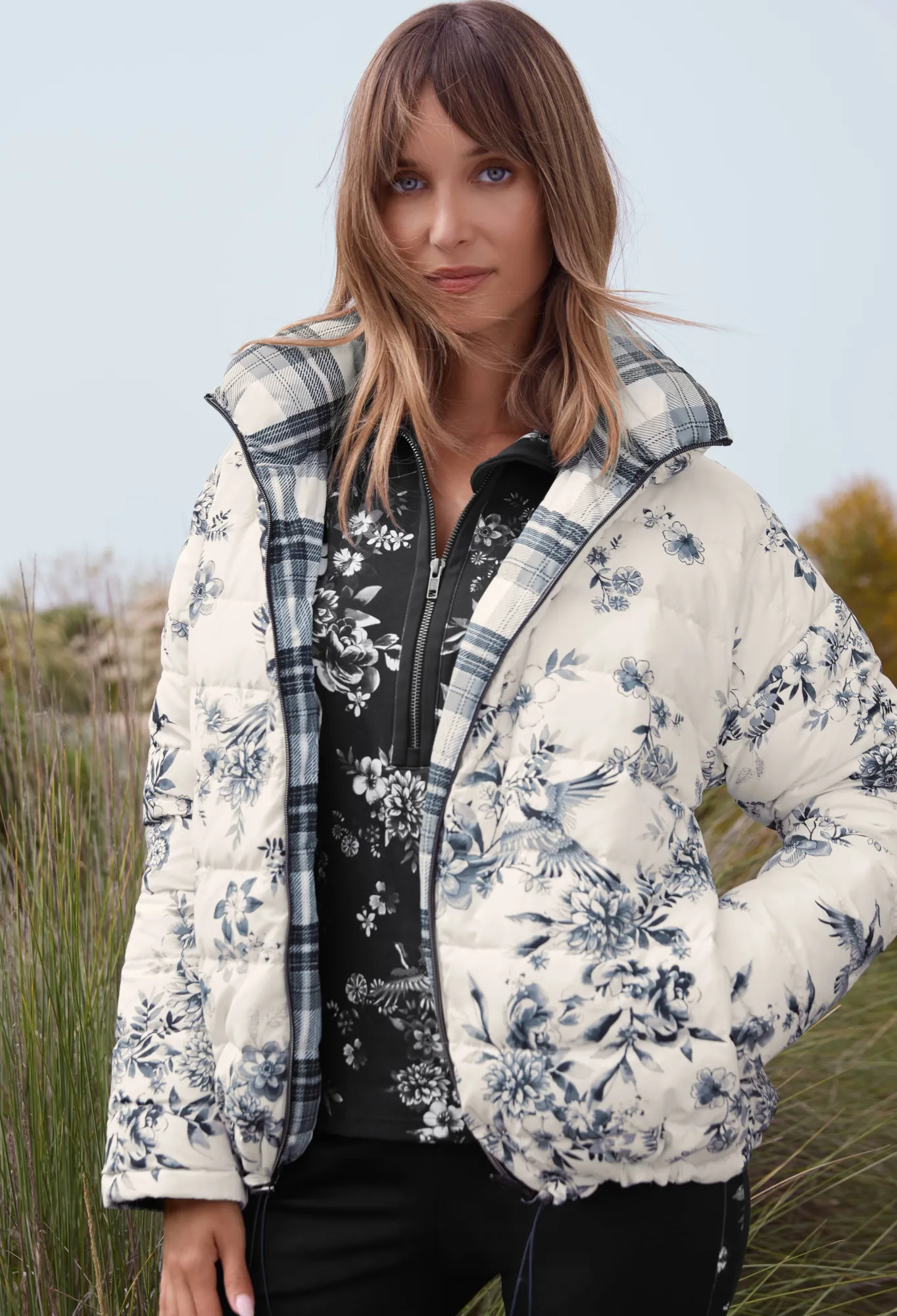 A Tale Of Two Styles, The Ivory Dreamer Jacket Fuses Function With Finesse. Crafted From A Comfortable Material, This Jacket Features Pockets On The Inside And Outside, A Zipper Front, A Bungee Cord At The Hem, A Bold Check Pattern, And A Reversible Side With A Detailed Floral Print. Style This Jacket With Everything From Jeans To Casual Workwear And Off-Duty Staples.