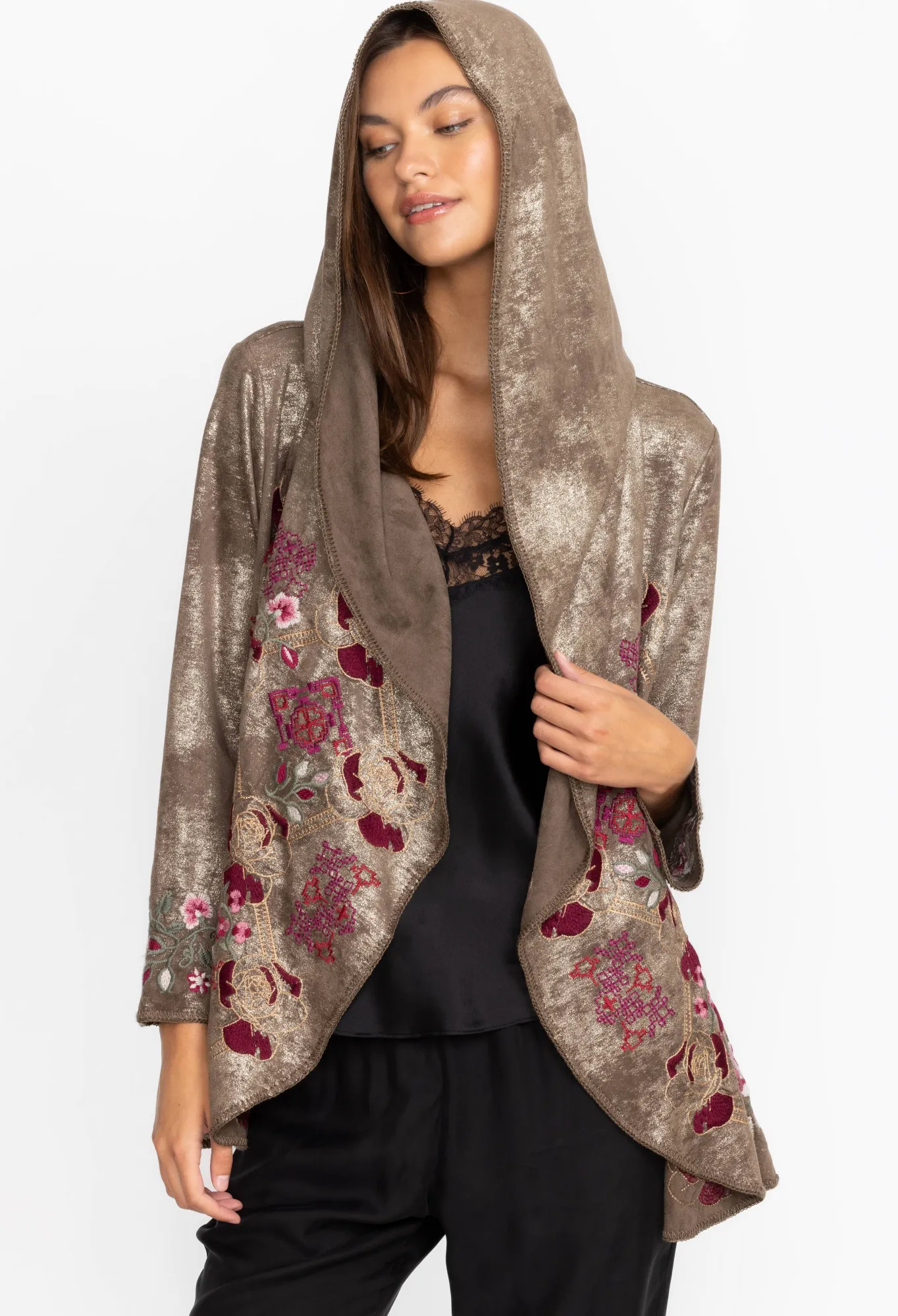 Elevating Your Casual Wardrobe With A Touch Of Sparkle, The Claudette Metallic Sweater Is A Dazzling Second Layer. Featuring An Open Shawl Neckline With A Waterfall Front, This Beautiful Cardigan Is The Perfect Blend Of Texture And Shine. Layer Over A Casual Tee Or Silk Button Down For A Variety Of Unique Combinations.