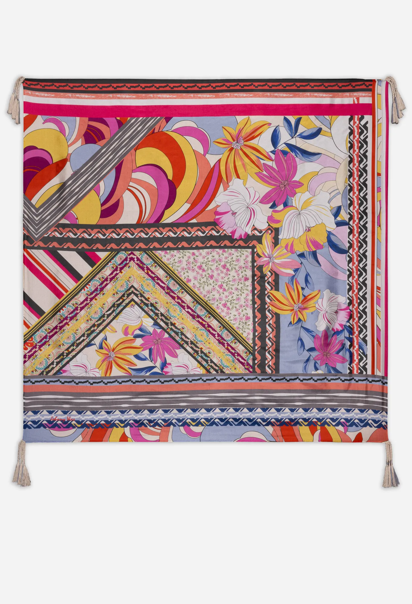Punctuated With An Artistic Flair, The Rachel May Scarf Seamlessly Marries Graphic Details With An Elegant Approach. A Glamorous Accessory For Year-Round Looks, This Scarf Is Spun From Lustrous Silk And Features An Abstract Floral Pattern In Bright Shades, A Colorful Striped Design, And Tassels On The Corners For An Opulent Feel. Style Around The Neck For A Classic Finish.