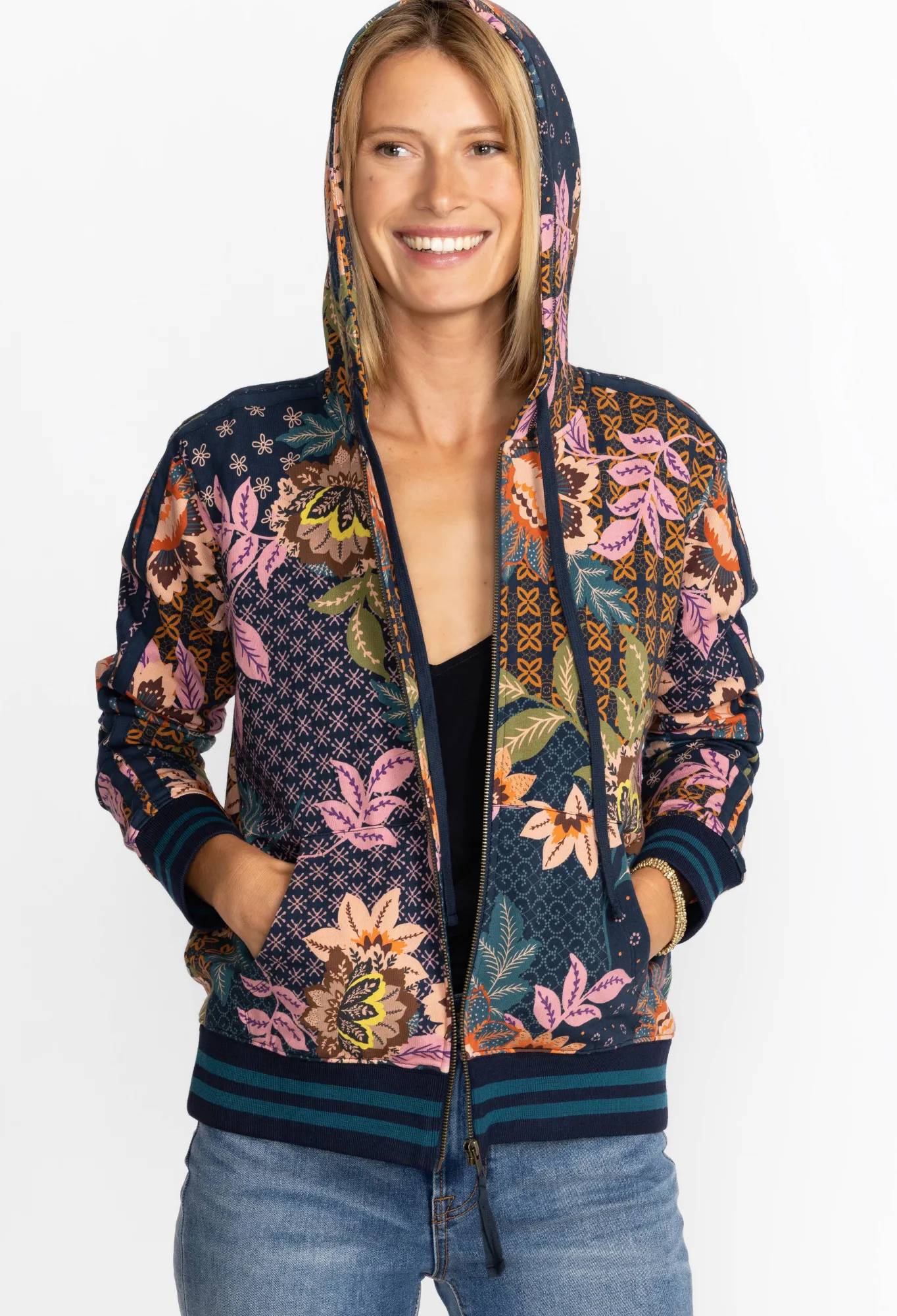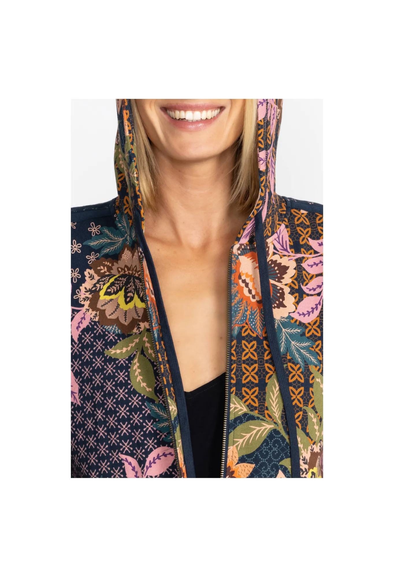Embellished With Bold Floral Bouquets On A Rich Background, The Delfino Print Zip Up Hoodie Is Equal Parts Comfort And S…