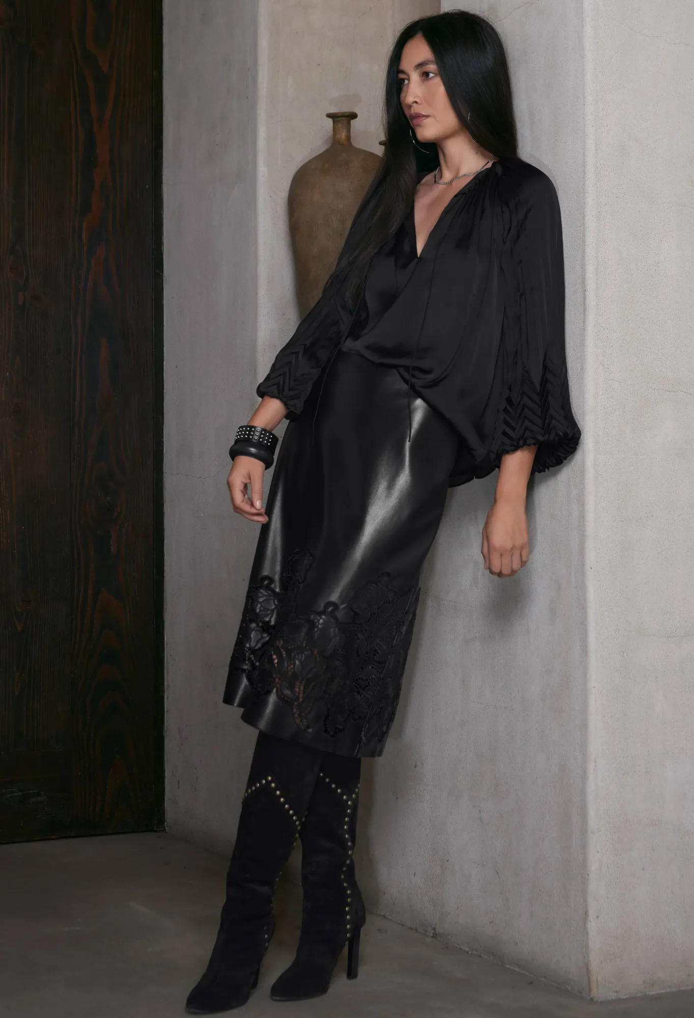 Featuring A Relaxed Silhouette And Stunning Details, The Gemma Pleated Blouse Is A Classic Beauty. Pleated At The Neckline And Cinched With A Spaghetti Tie, This Beautiful Blouse Features Elastic Sleeve Cuffs And A Fluttering Hemline For Ease Of Wear. Pair With Colorful Printed Pants And Sleek Pants For A Polished Workwear Look.