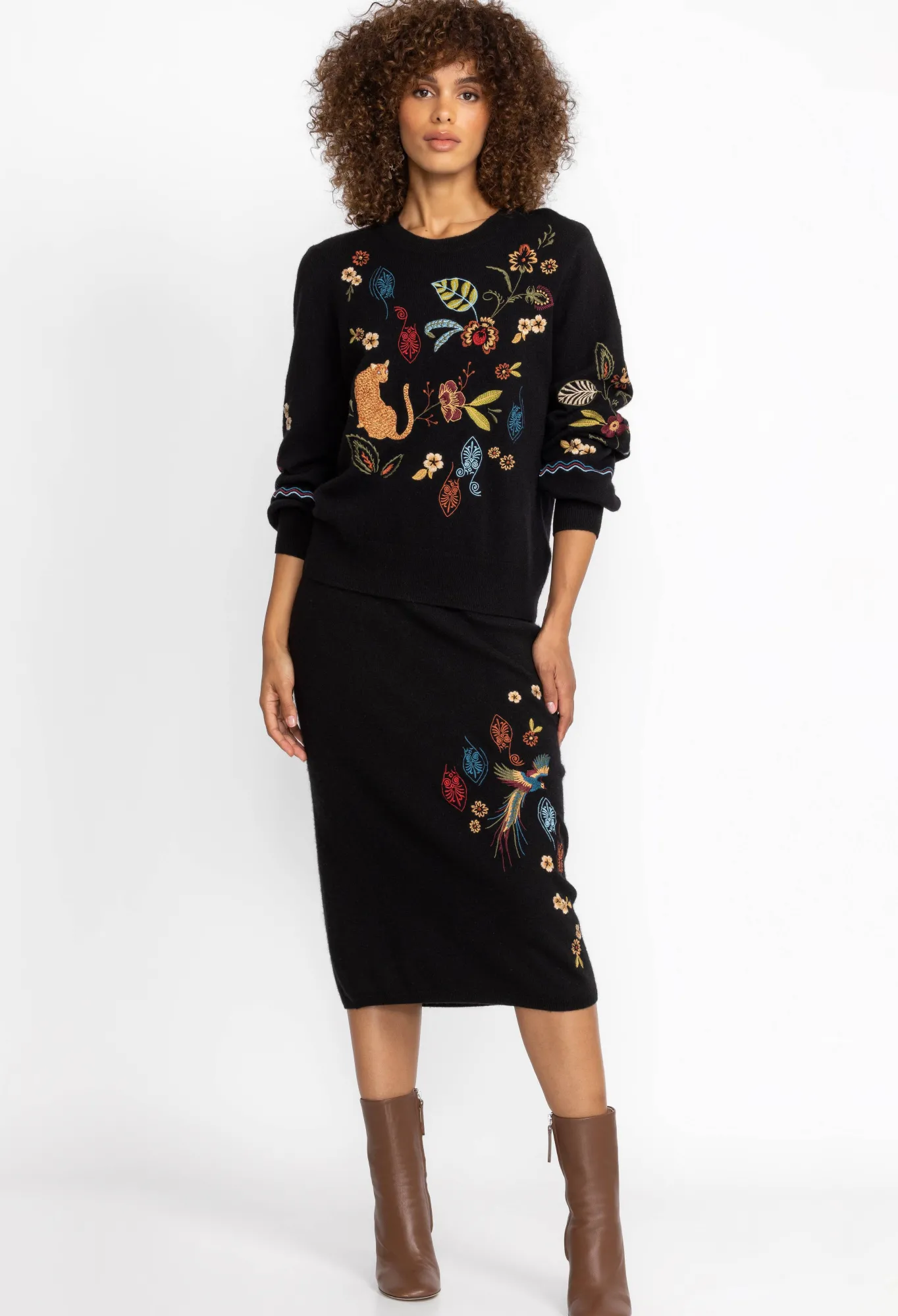 Introducing A Timeless Black Maxi Skirt With A Captivating Burst Of Color, The Isabella Sweater Skirt Is An Essential Addition To Your Wardrobe. Exquisitely Crafted From A Luxurious Blend Of Wool And Cashmere, This Skirt Is Adorned With Striking Placement Embroidery, Making It An Ideal Choice For Cooler Days. For An Effortlessly Chic Ensemble, Pair It With The Isabella Sweater Top Or Explore Other Coordinating Options To Create A Fresh And Stylish Look.