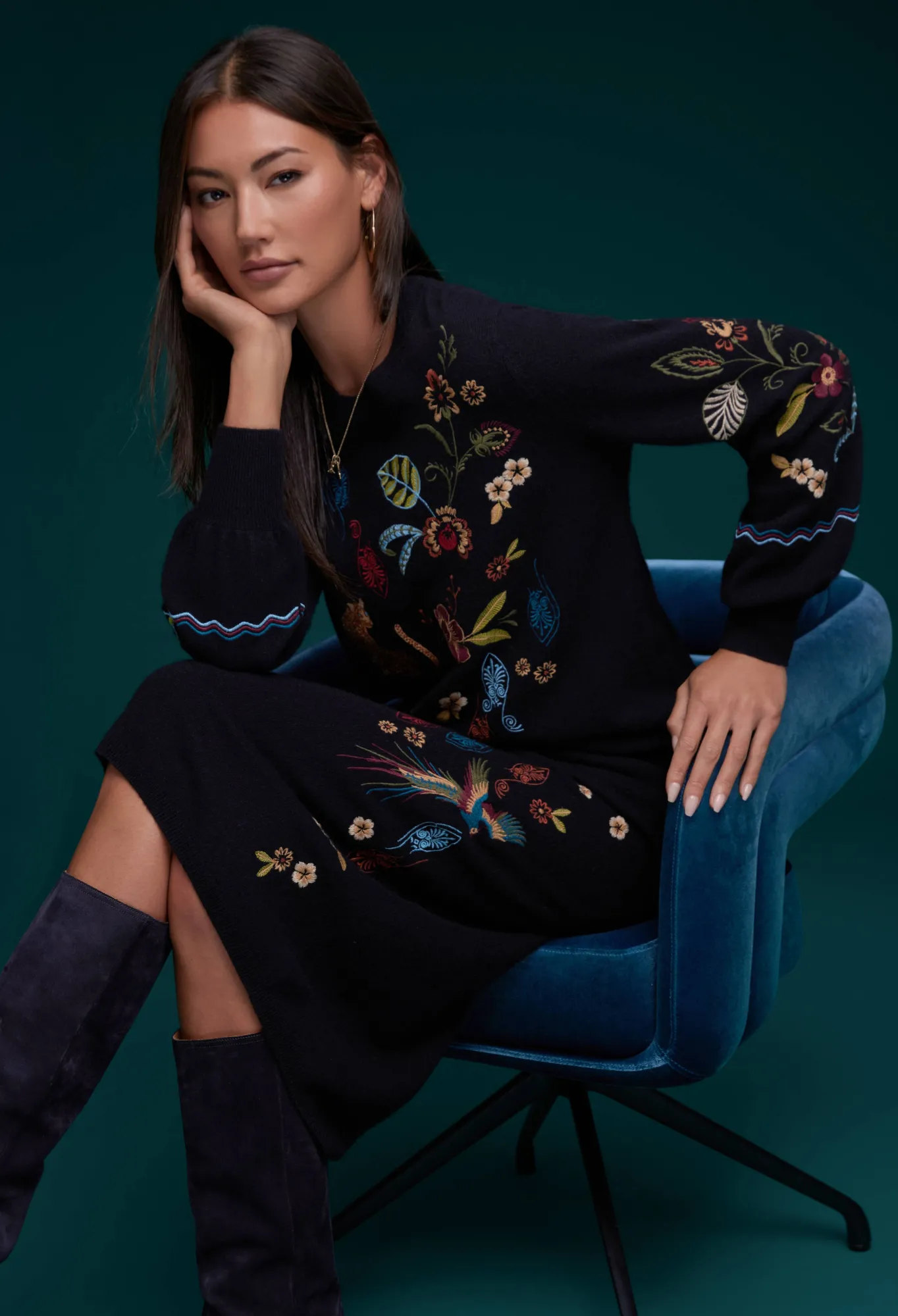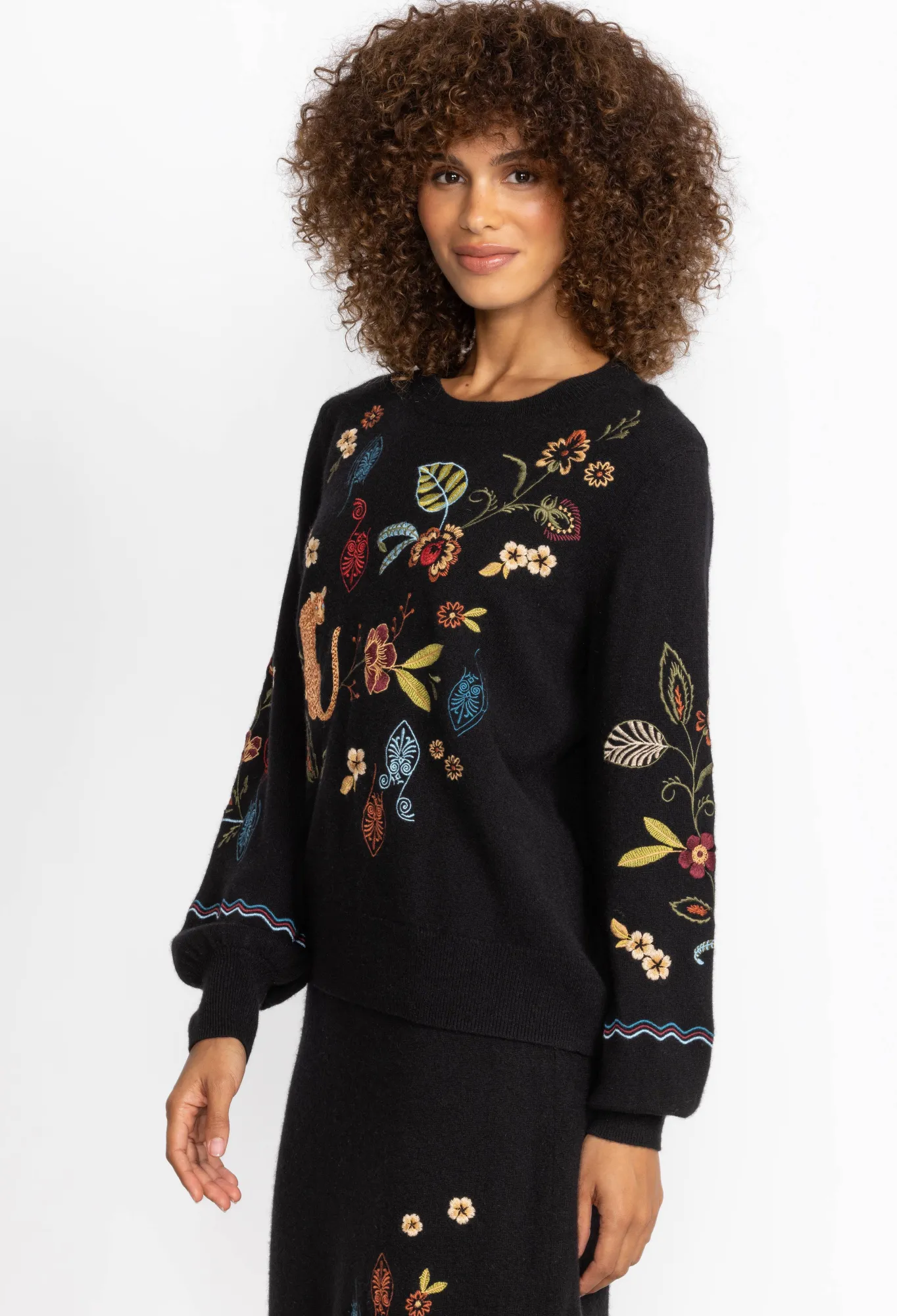 Meticulously Fashioned From A Luxurious Blend Of Wool And Cashmere, The Isabella Sweater Top Introduces A Striking Burst Of Vibrant Color To The Timeless Black Pullover. This Cozy Round-Neck Sweater Boasts Playful Placement Embroidery That Adds An Enchanting Touch. Elevate Your Style By Pairing It With The Isabella Sweater Skirt For A Seamlessly Coordinated Ensemble.