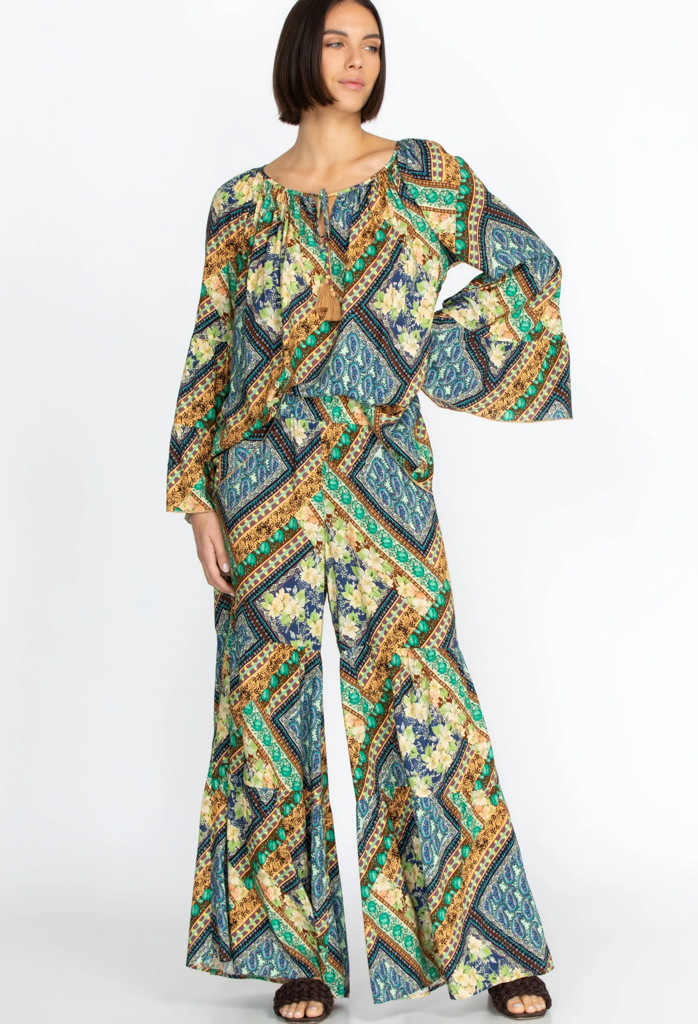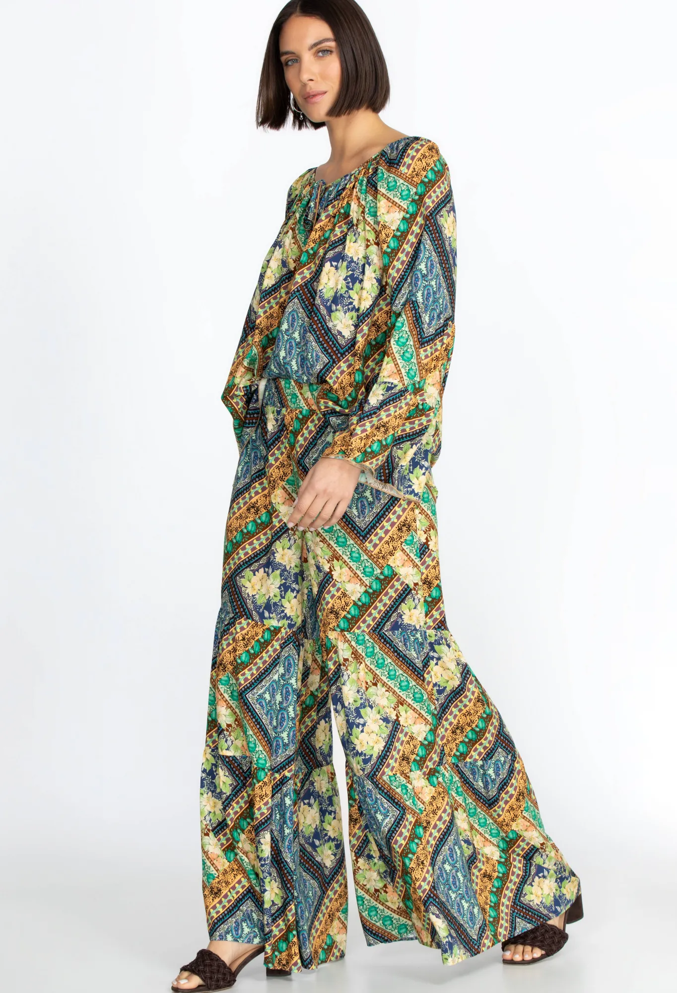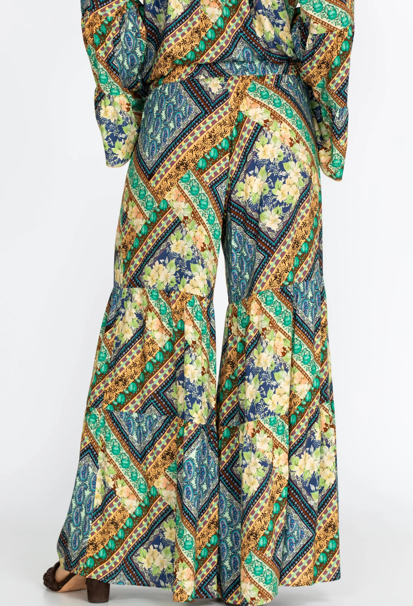The Detailed Square And Floral Pattern Complements The Earthy-Toned Color Palette On The Rivera Tiered Pants. Infused Wi…