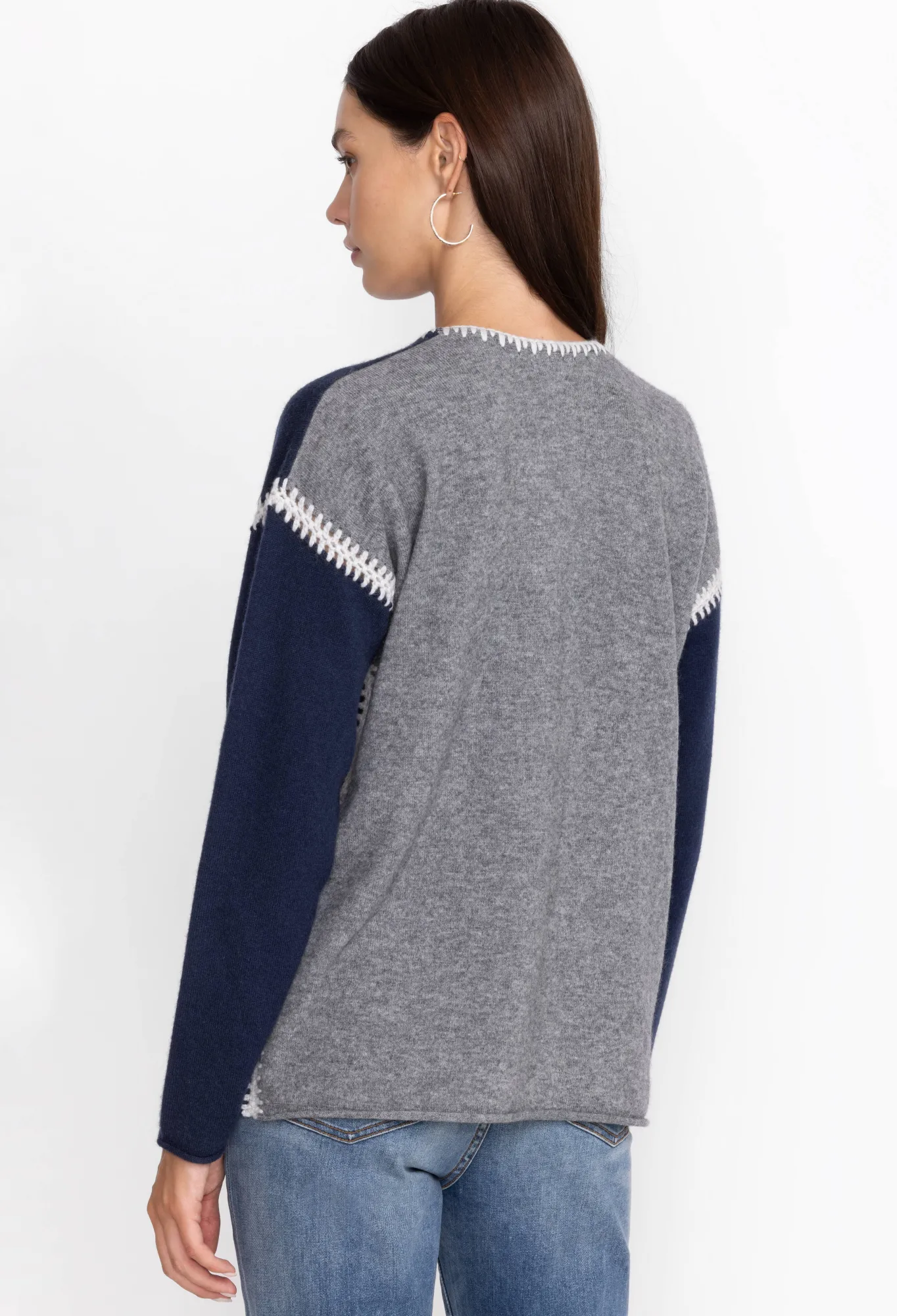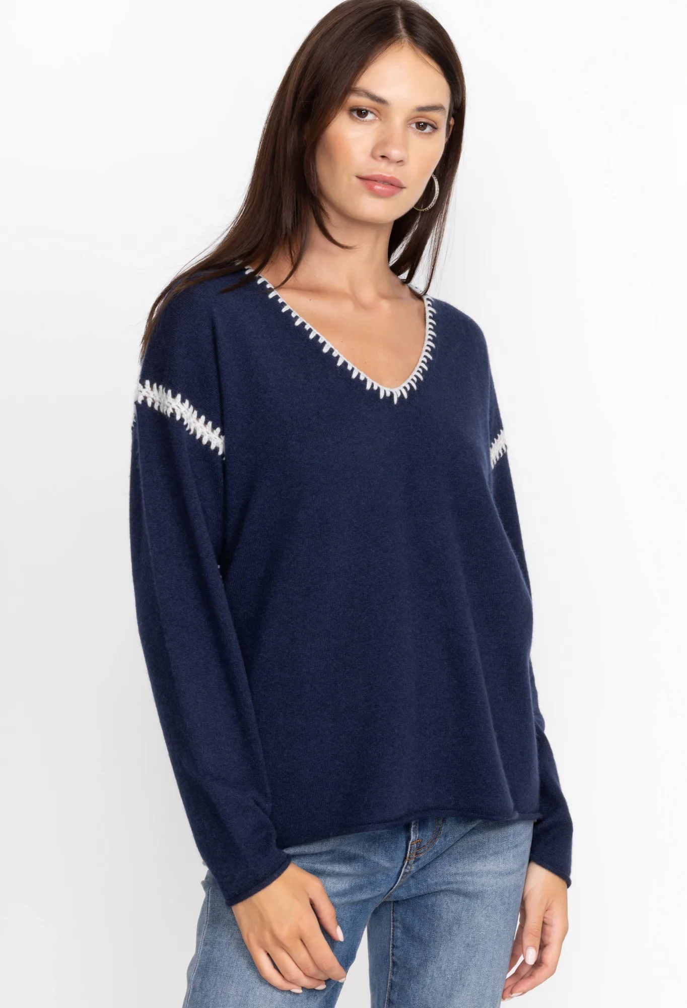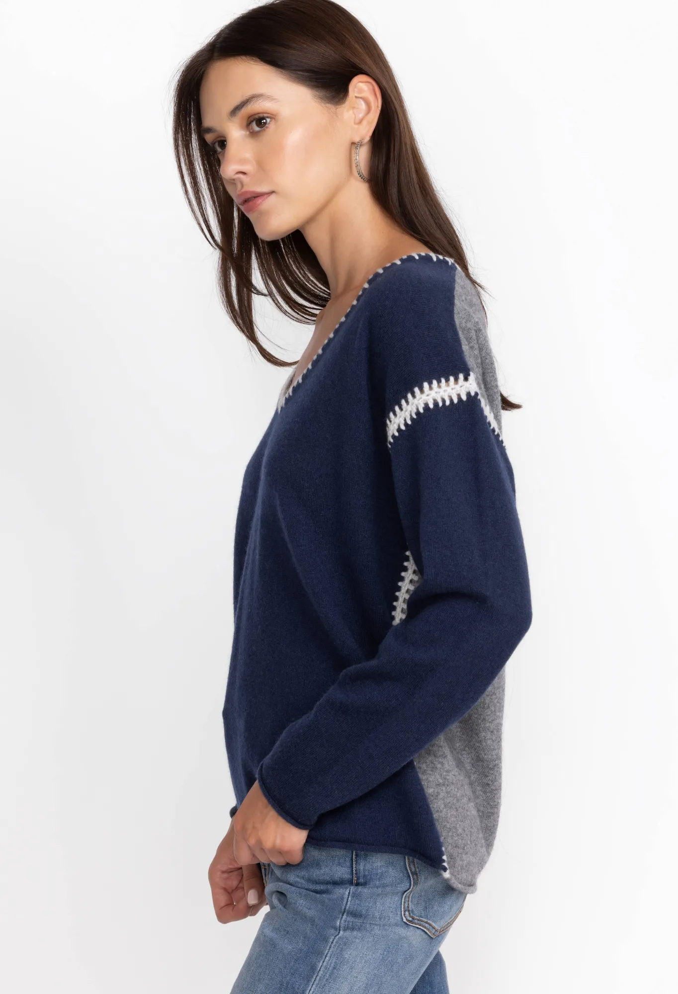 Cheap The Whipstitch V Neck Pullover – Color Block Women Tops