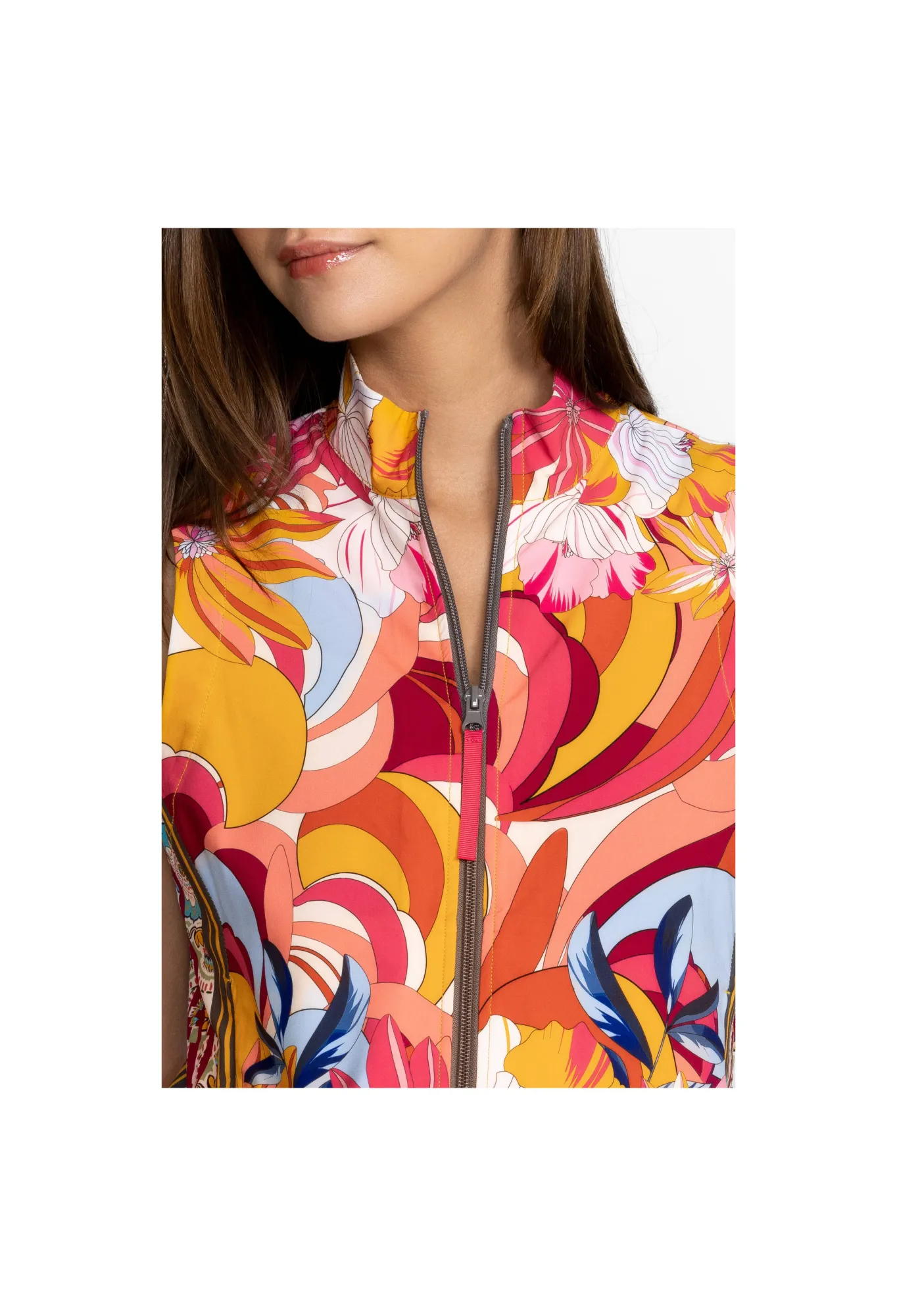 Characterized By Rich Colors, The Rachel May Zip Front Vest Redefines An Iconic 90’s Sports Design With Abstract Flowers. Made From A Stretchy Comfortable And Breathable Fabric, This Vest Boasts A High Neck, A Zipper Front, Practical Pockets With Zippers, And Tropical Flowers For A Feminine Finish. Wear With A Tennis Skirt Or Team With Leggings On Cooler Days.