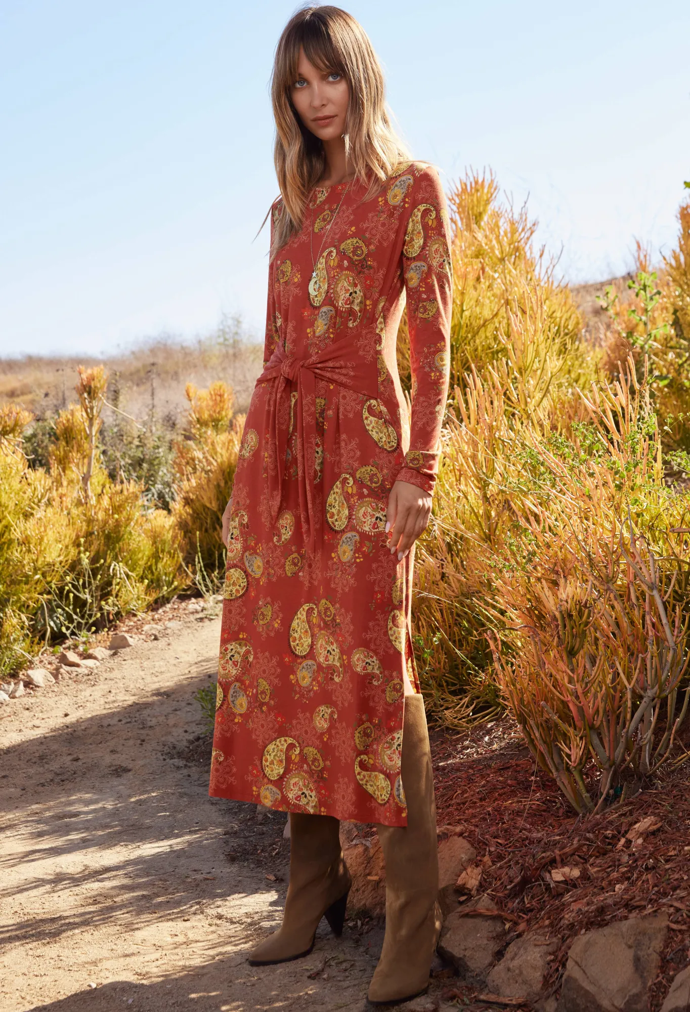 Channel Laid-Back Glamour This Season In The Elegant Paisley Lace Tie Front Knit Dress. Spun From A Soft Fabric With A D…