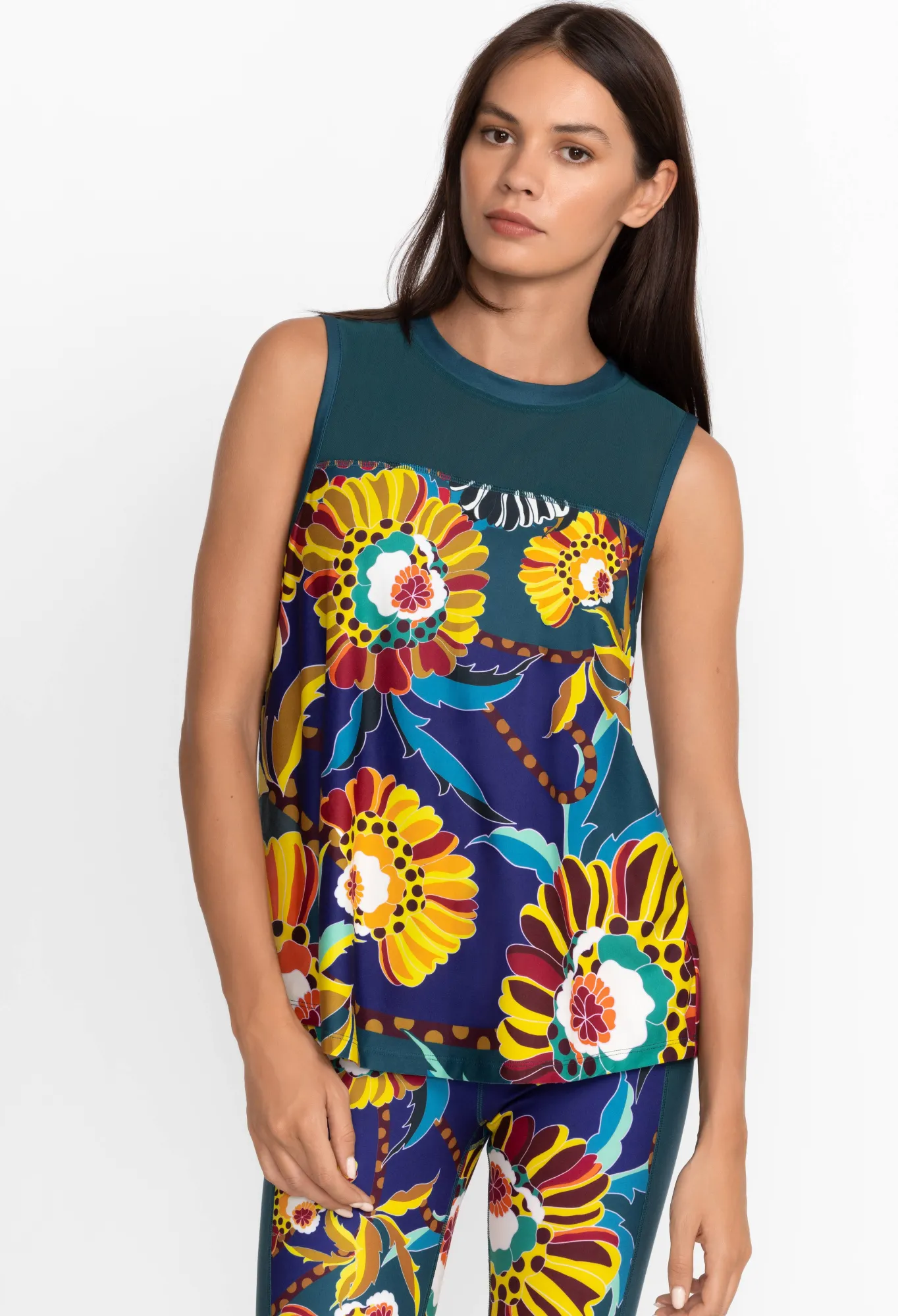 Providing A Harmonious Blend Of Invigorating Florals And Breathable Active Mesh, The Kimbra High Low Mesh Contrast Tank …