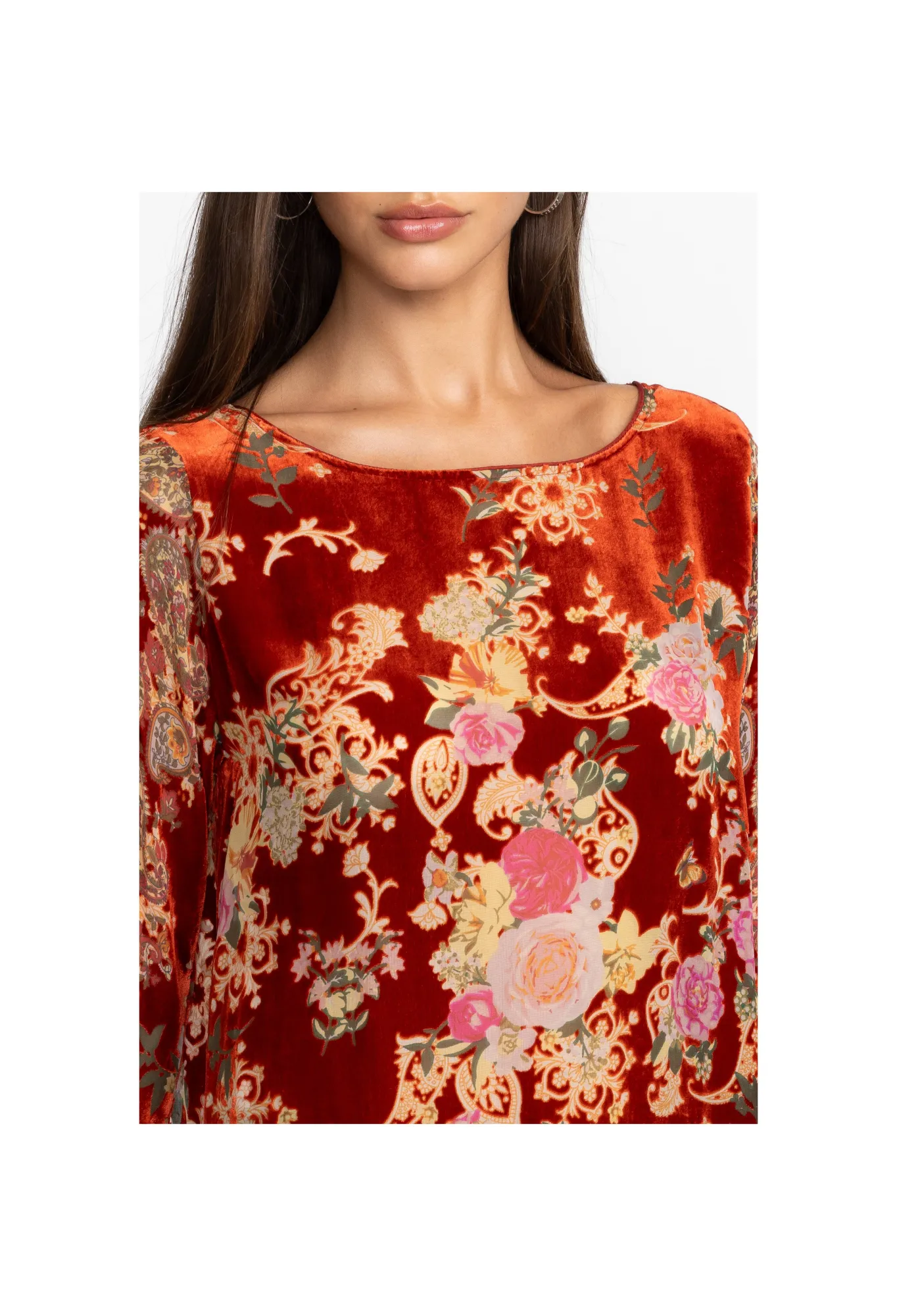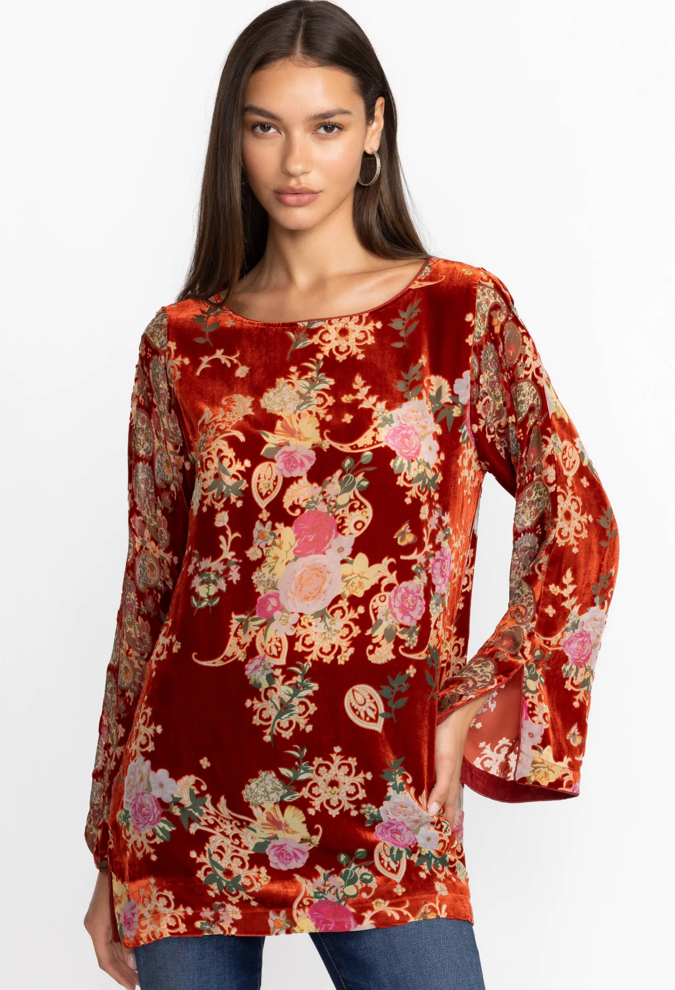 Elegantly Showcasing Vibrant Floral Compositions Against A Luxurious Backdrop, The Paisley Kimi Tunic Is A Captivating T…