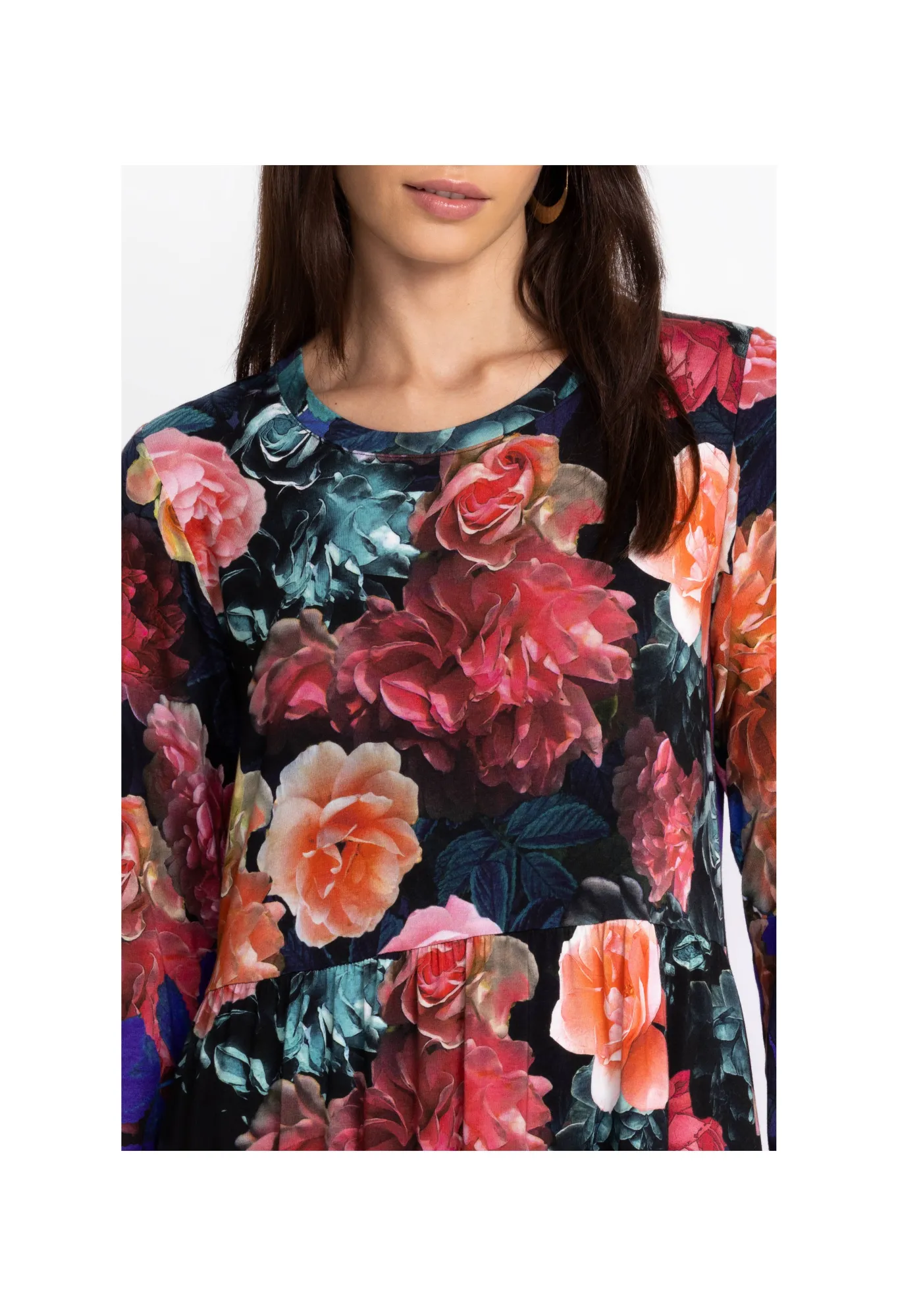 Featuring Bursts Of Colorful Floral Bouquets, The Studio Tiered Tunic Is The Perfect Combination Of Casual Comfort And Elevated Style. Boasting A High, Rounded Neckline And Tiered Bodice, This A-Line Top Moves As You Move To Create A Visually Stunning Look. Pair With Embroidered Leggings And Ballet Flats For A Polished Casual Vibe.