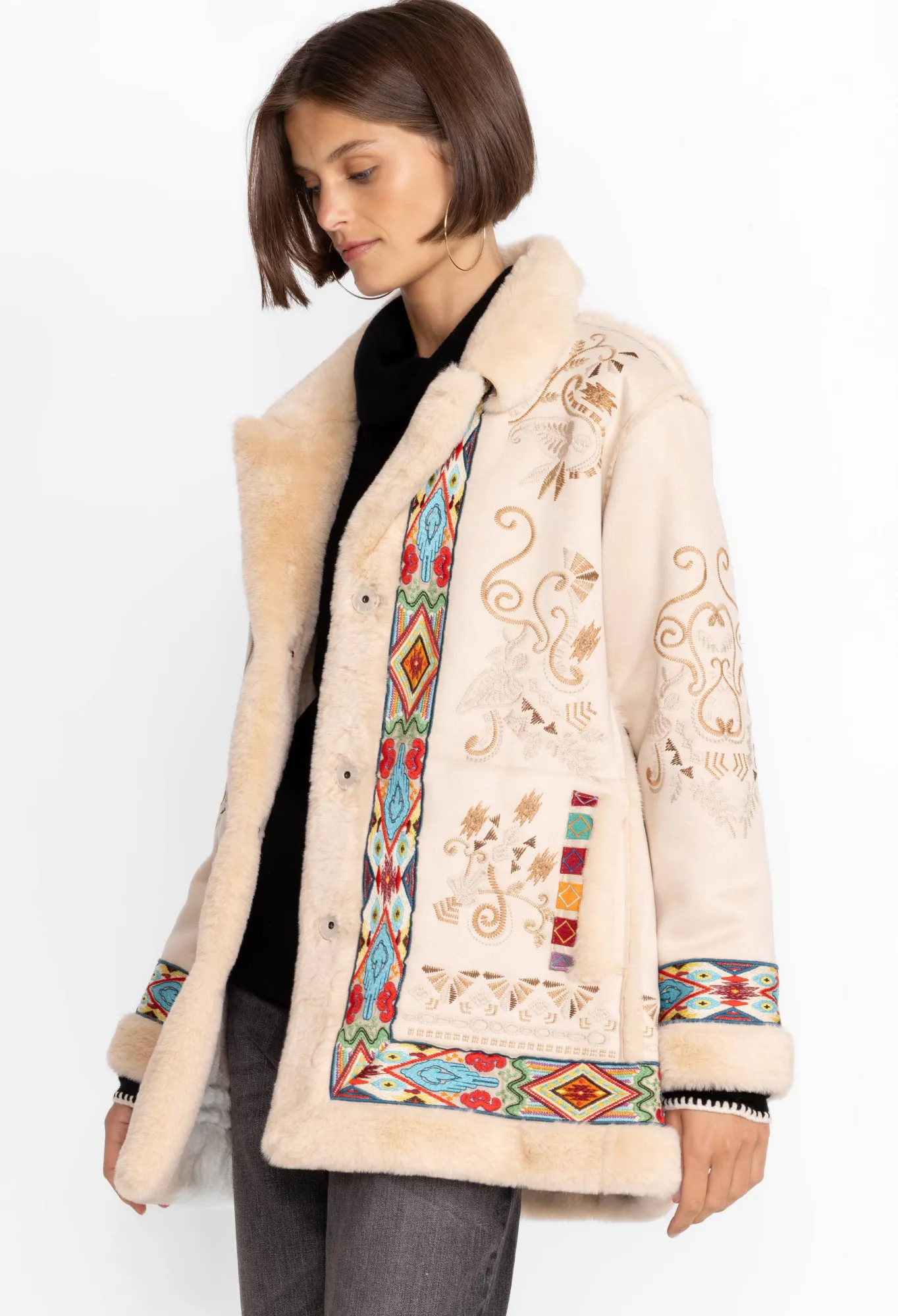 Add A Touch Of Unmatched Style To Apres Ski Activities With The Hepburn Ski Faux Fur Coat. Perfect For Both The Slopes And Evening Activities, This Coat Is Made From Insulating Faux Fur And Features A Fabric Covered Snap Closure, Pockets, A Faux Fur Collar And Trim, And A Detailed Floral Placement Embroidery. Pair With Knitted Pants And A Sweater For A Cozy Cold-Weather Finish.