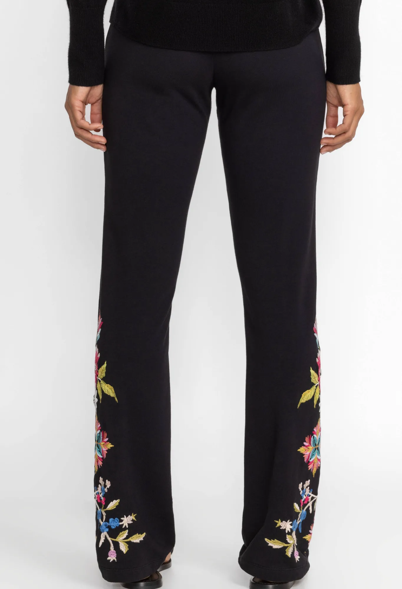Combining Casual Comfort With A Flair For The Dramatic, The Julie Baby Boot Leggings Add A Splash Of Color To Your Look. Crafted From Cotton Infused With A Touch Of Spandex, These Leggings Offer A Comfortable Elastic Waist And Vibrant Floral Embroidery At The Hemline. Pair With A Bold Color Tunic And Glittering Jewelry For An A Brunch-Worthy Look.