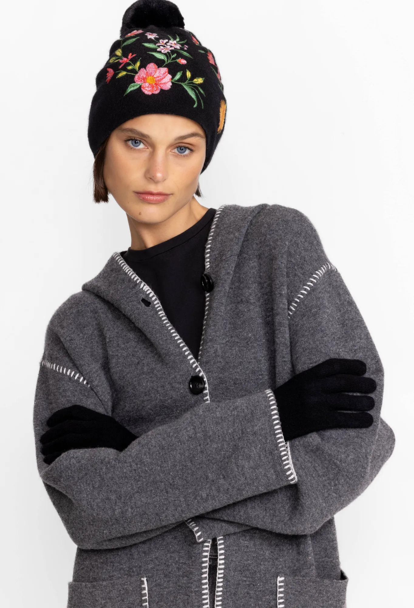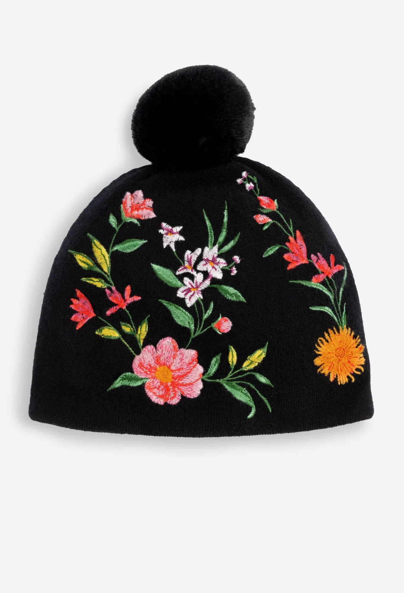 Spun From A Soft Wool Cashmere Blend, The Vista Beanie Calls To Mind Images Of A Beautiful Floral Garden. A Stylish Pick For Colder Days, This Beanie Is Characterized By A Pompom Embellishment And Vibrant Embroidered Flowers. Wear This Beanie With A Simple Cozy Knit, A Puffer Jacket, And Jeans On Your Next Frosty Weekend Walk.