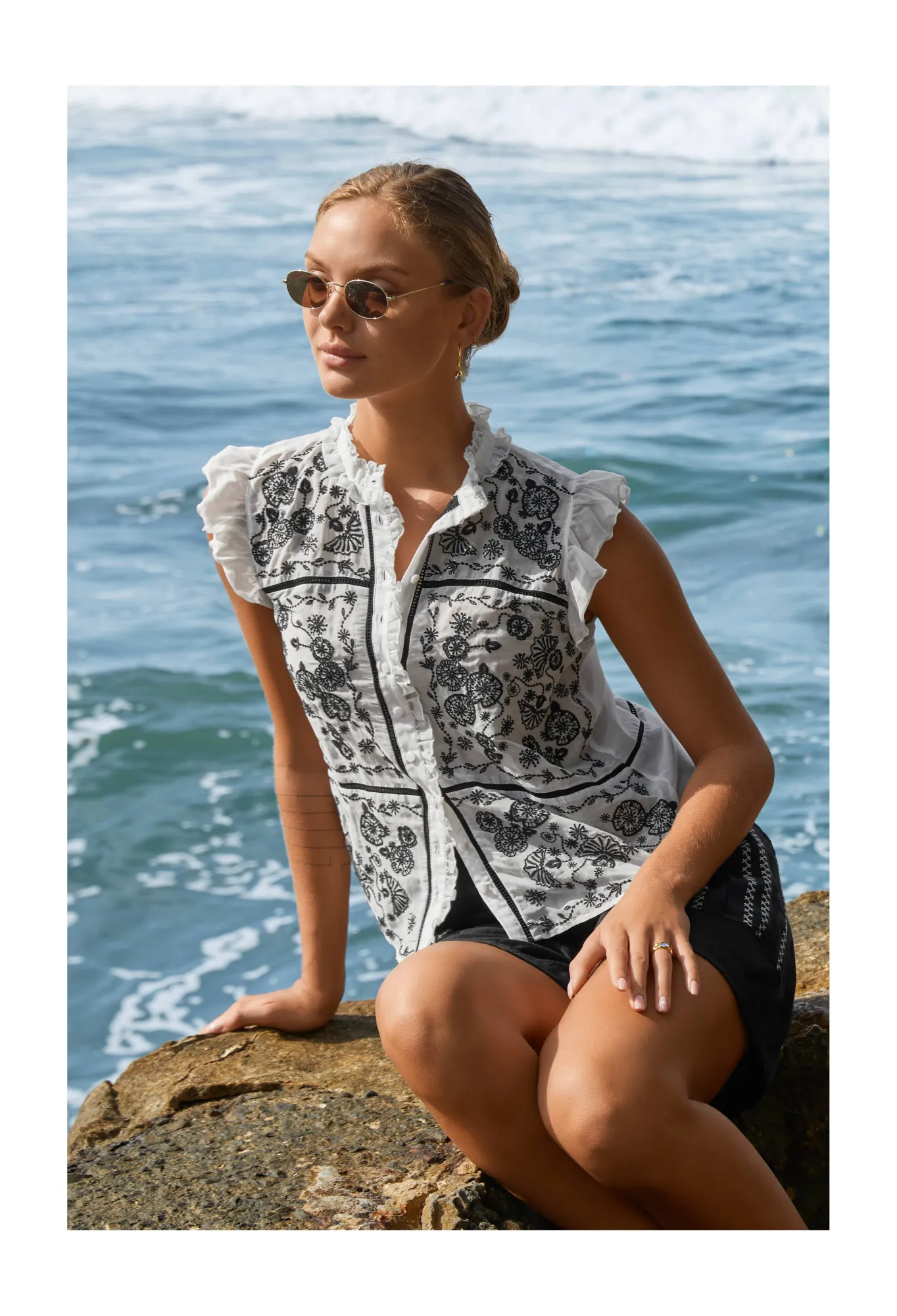 Instantly Elevating Any Outfit, The Abigail Sunglasses Are A Modern Rework Of An Iconic ’90S Frame. The Sunglasses Are Characterized By A Round Gold-Tone Frame With Green Tinted Lenses, Comfortable Clear Nose Pads, And Black Temples. Keep Your Outfit Simple By Pairing These Sunglasses With Understated Separates Or Style With A Printed Tunic For A Fashion-Forward Take On Vacation Dressing.