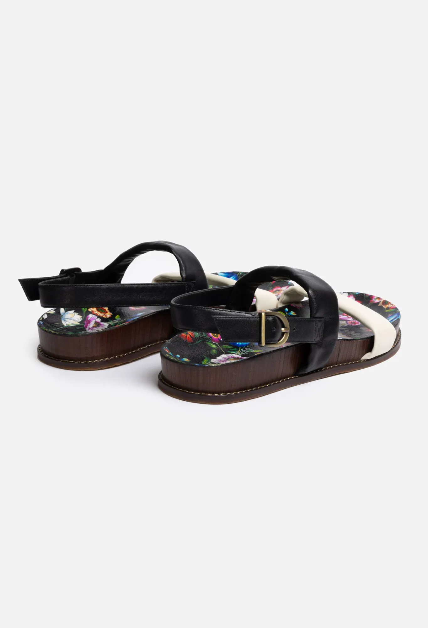 Infused With Instant Appeal, The Double Band Sandals Are The Perfect Pick For Both Seaside Strolls And Summer Days In The City. Crafted From Supple Leather, These Sandals Feature An Open Round Toe, A White Strap Across The Front, An Additional Black Strap With A Slingback Strap, And A Durable Sole. For The Beach, Style With A Bikini And Cover Up, And For Day-To-Day Errands, Pair With Jeans And A Tank.