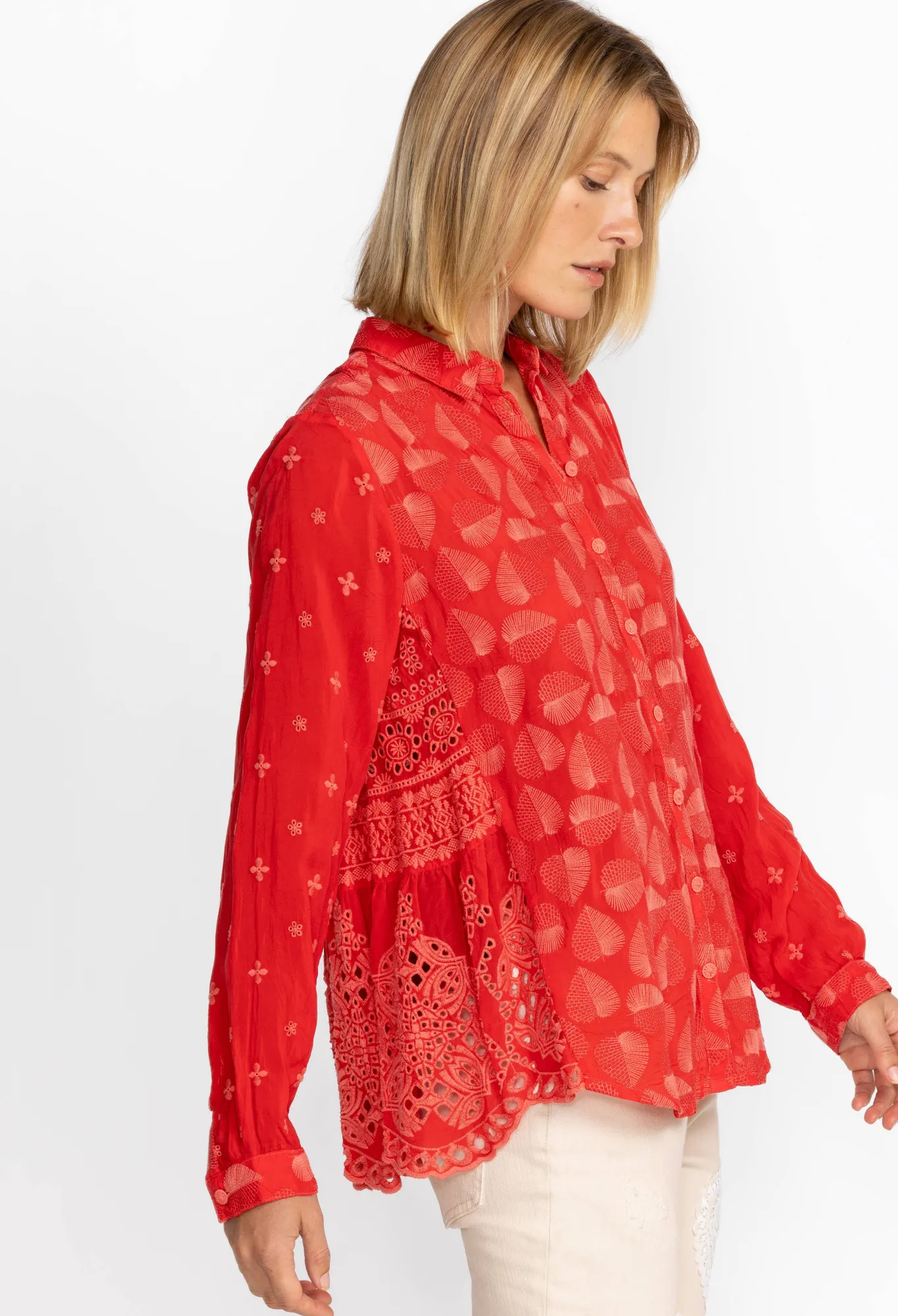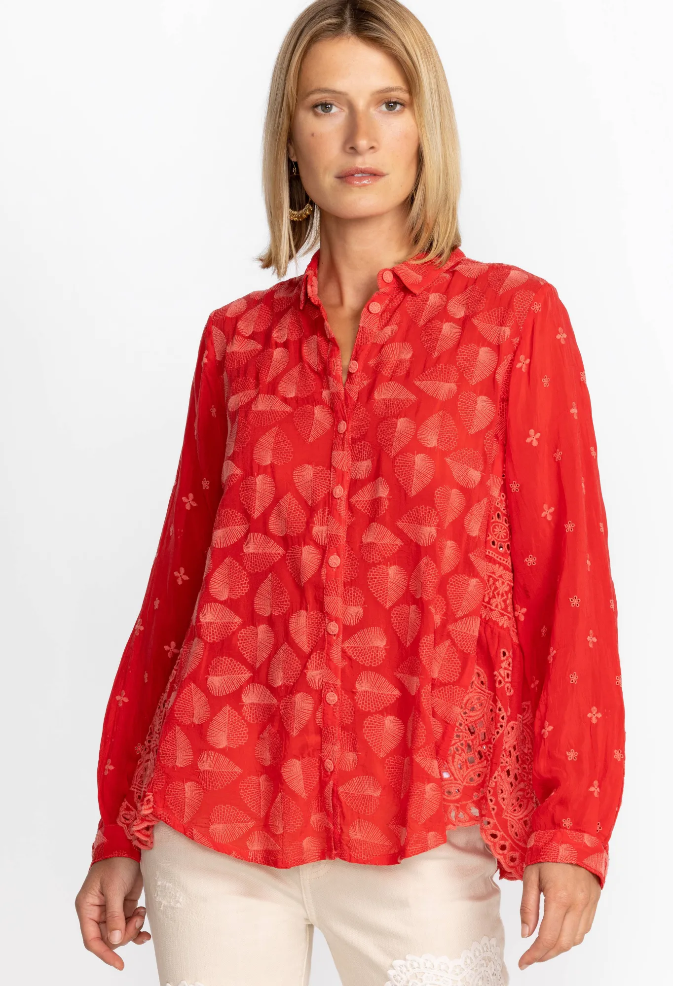 Equal Parts Sophisticated And Stylish, The Pine Desi Blouse Is A Failsafe Addition To Your Year-Round Repertoire. Crafted From Smooth Rayon, This Elegant Blouse Boasts A Classic Collar, Long Sleeves, A Front Button Closure, And A Subtle, Tonal Embroidery. Style This Blouse With Silk Separates And Bold Accessories Or Dress Down With Denim.