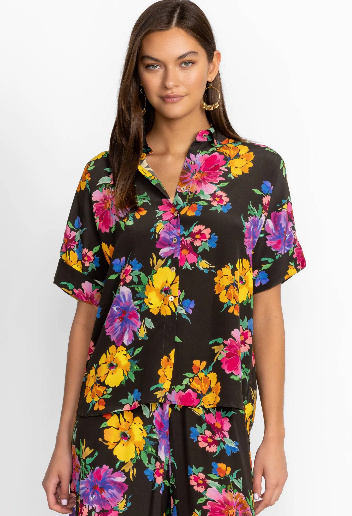 Featuring Rich Color To Celebrate The Season, The Poppy Silk Shirt Brings To Mind Rolling Hills Saturated In Vibrant Floral Tones. Crafted From Pure Silk And Fastened By Intricately Placed Shell Buttons, This Blouse Is The Capstone Of Any Look. Pair With A Solid Skirt Or Denim To Allow This Blouse To Take Center-Stage.