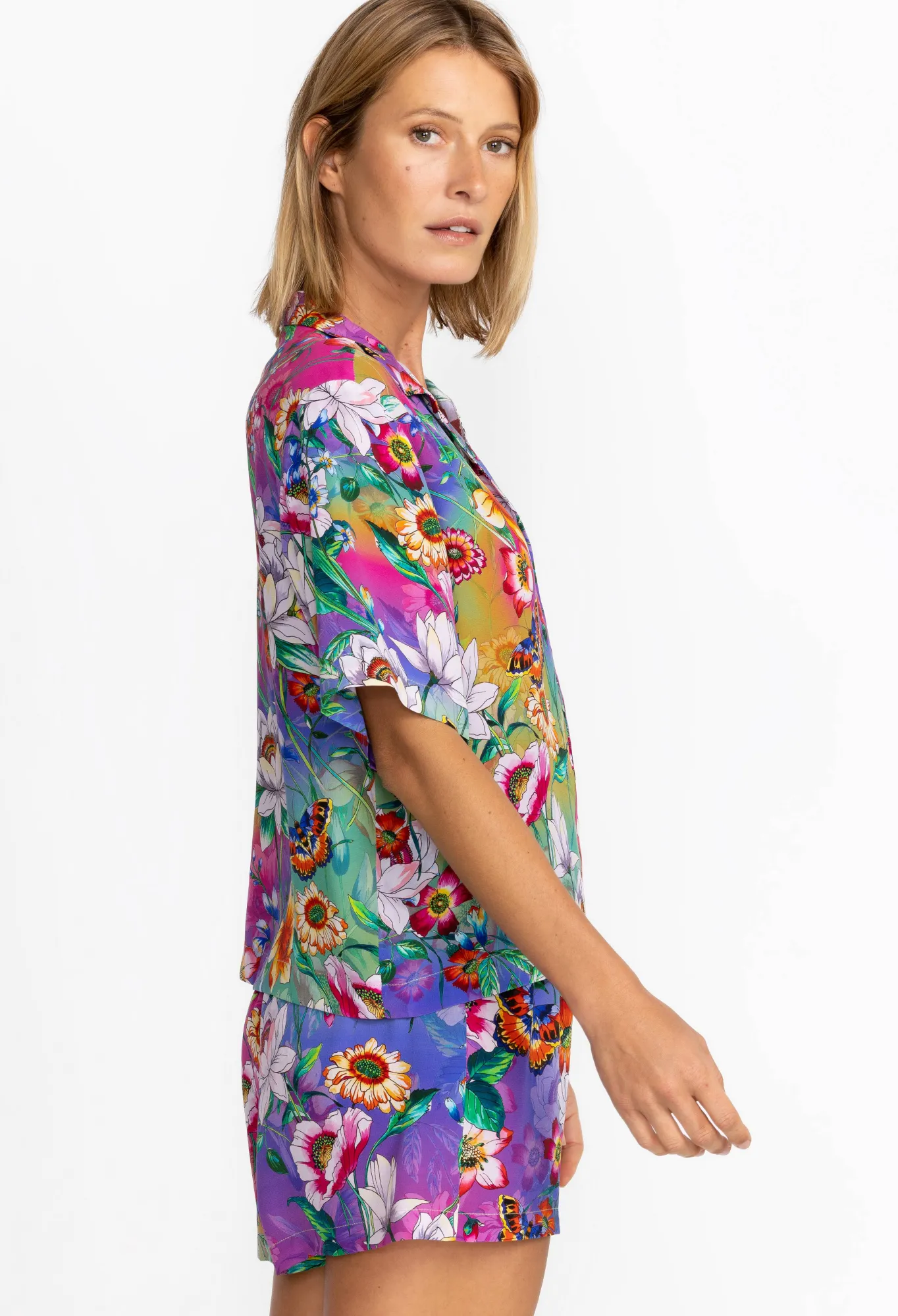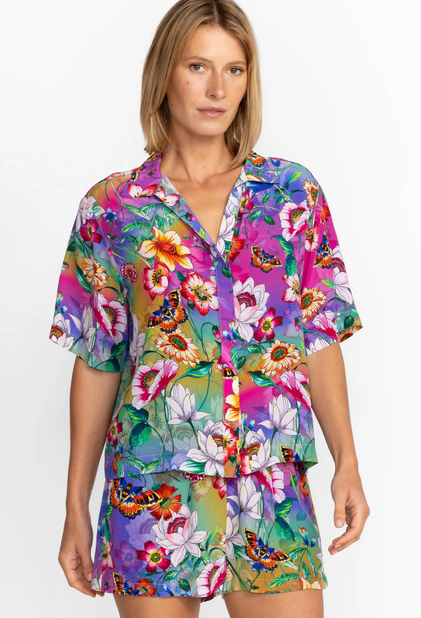Sleep Comfortably Through Warm Or Balmy Nights In The Carolyn Short Set. Crafted From 100% Silk And Accented With Vibrant Color And Fresh Floral Bouquets, This Pajama Set Offers Comfortable Shorts Paired With A Generous Cut Button-Front Top Detailed With Shell Buttons. Pair With The Everlyn Robe And Cozy Slippers For An Evening In.