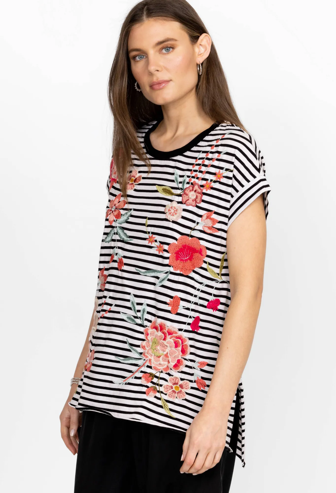 A Versatile Must-Have, The Joya Relaxed Drape Tee Makes Daytime Dressing Easy Thanks To Its Simple Cut And Timeless Design Details. Adopting A Relaxed Fit, This Tee Is Made From Durable Cotton With A Round Neck, Short Sleeves, A Flower-Dotted Placement Embroidery, Draped Detailing, And A Split Hem For Unrestricted Movement. Wear With White Pants For An Ethereal Look Or Keep It Simple With Jeans.